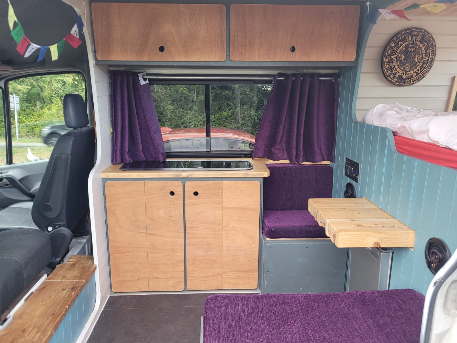 Beautifully bespoke converted Mercedes Sprinter. This van was built as a second home when working away, to go travelling in, and for festivals. Sad to see her leave but it’s time for a change of lifestyle as I save for a permanent home.