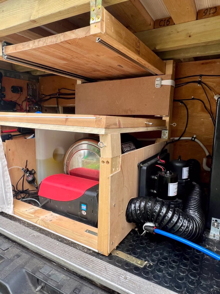 – New Renogy 2000W Inverter/Charger (newest version – changes DC to AC and AC to DC to charge the leisure battery)