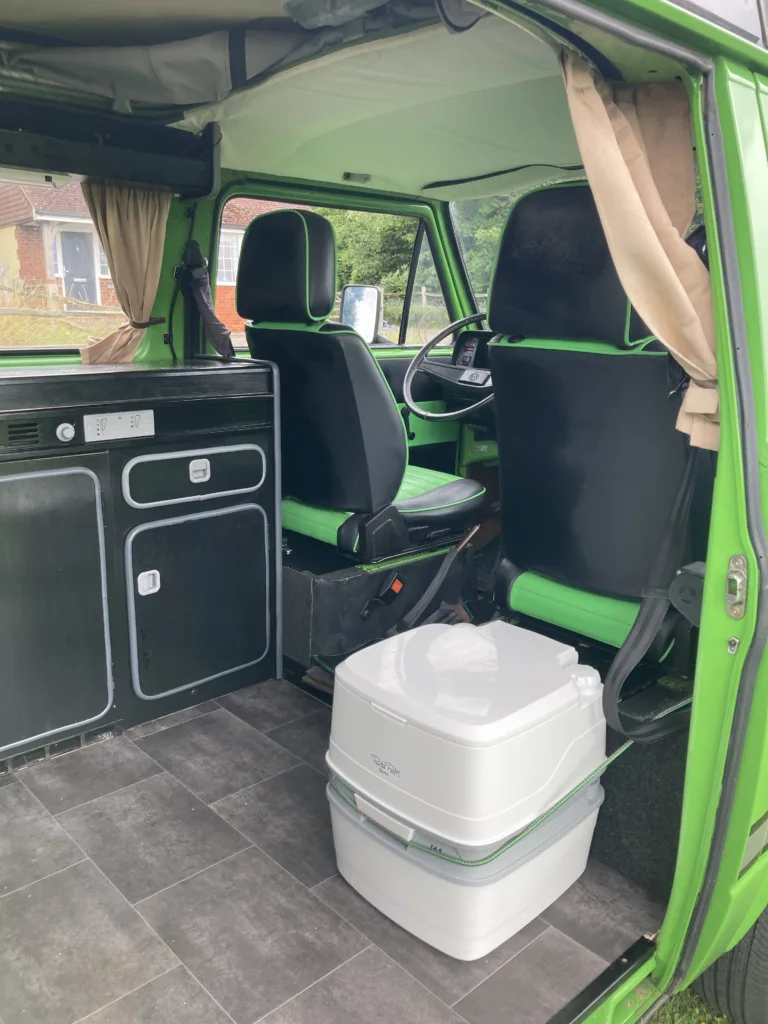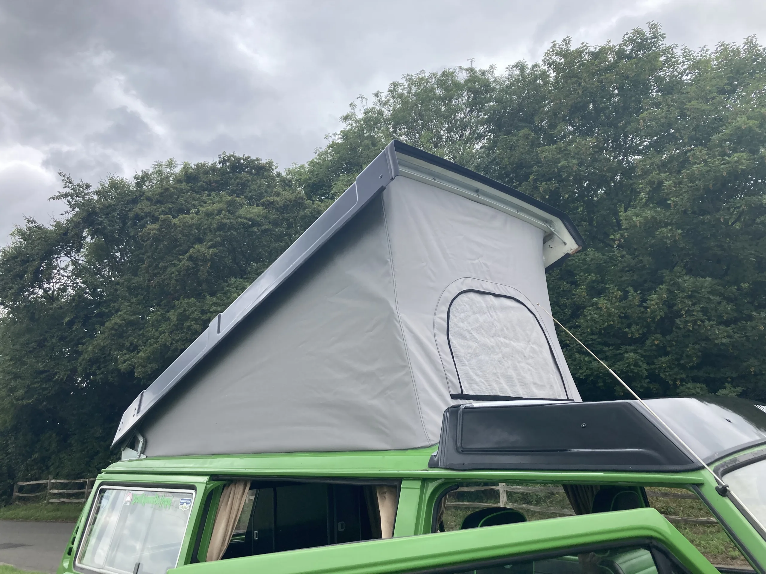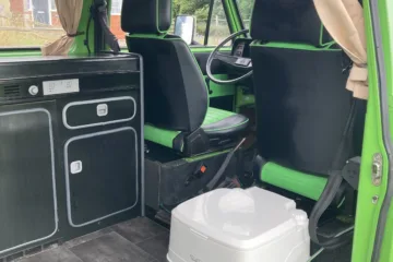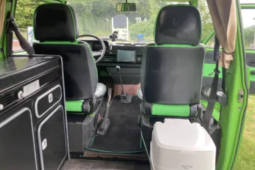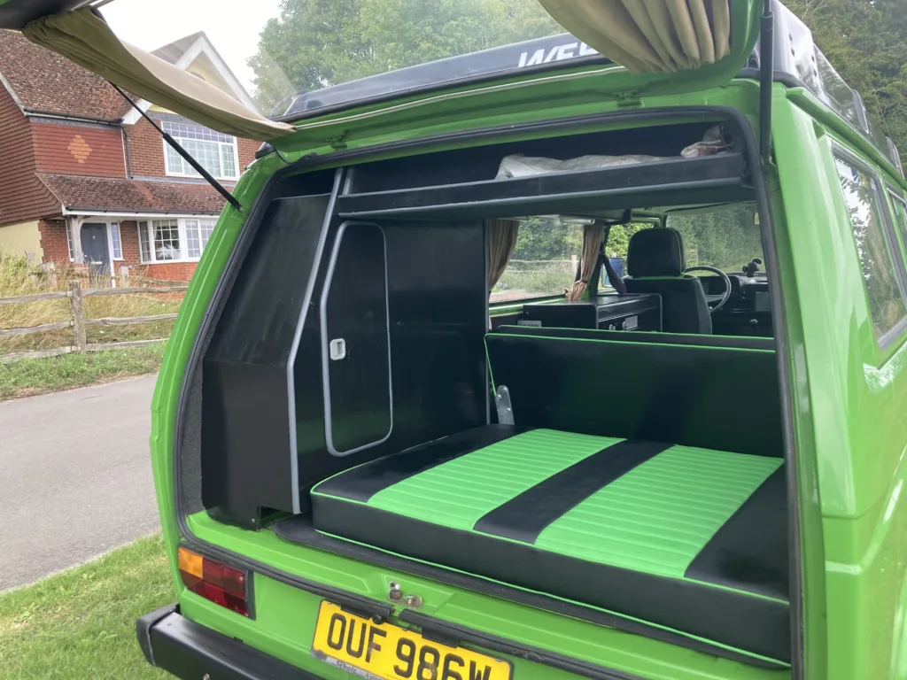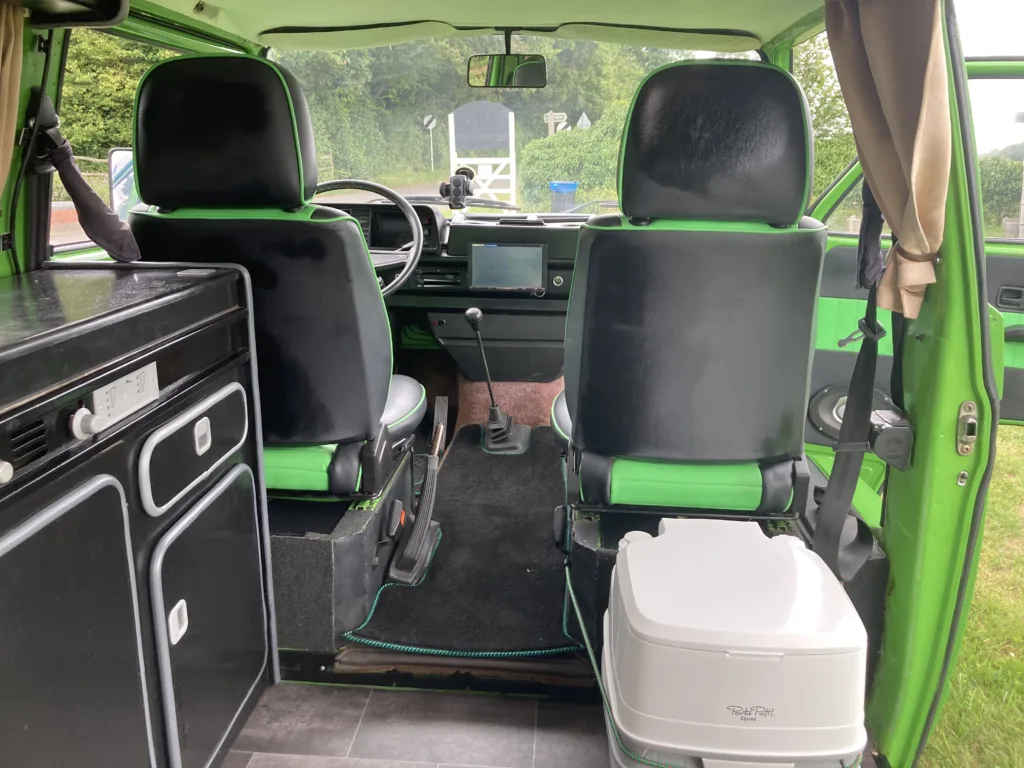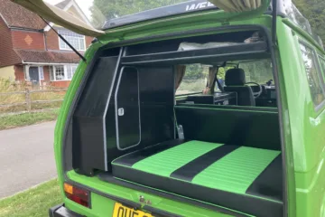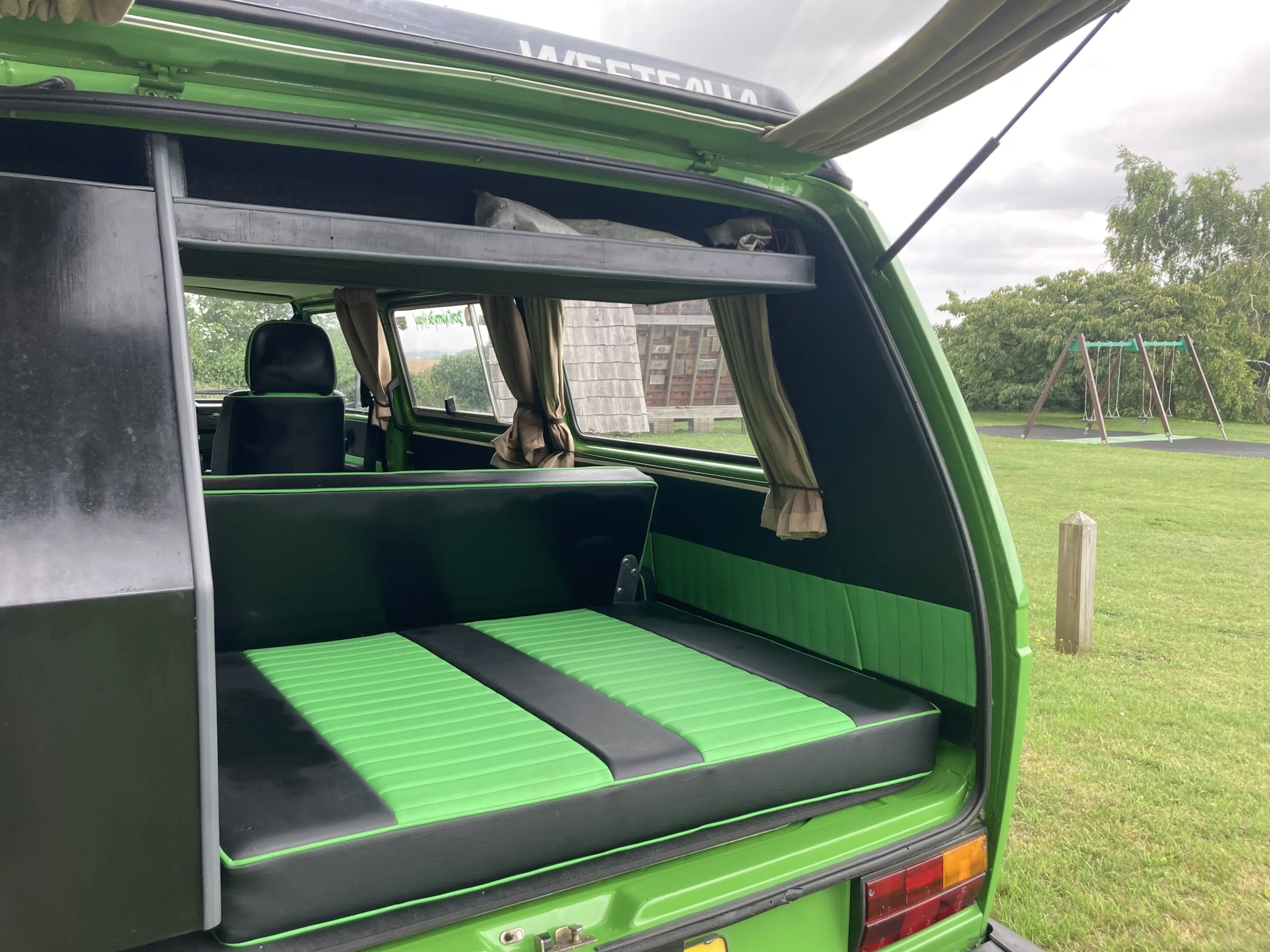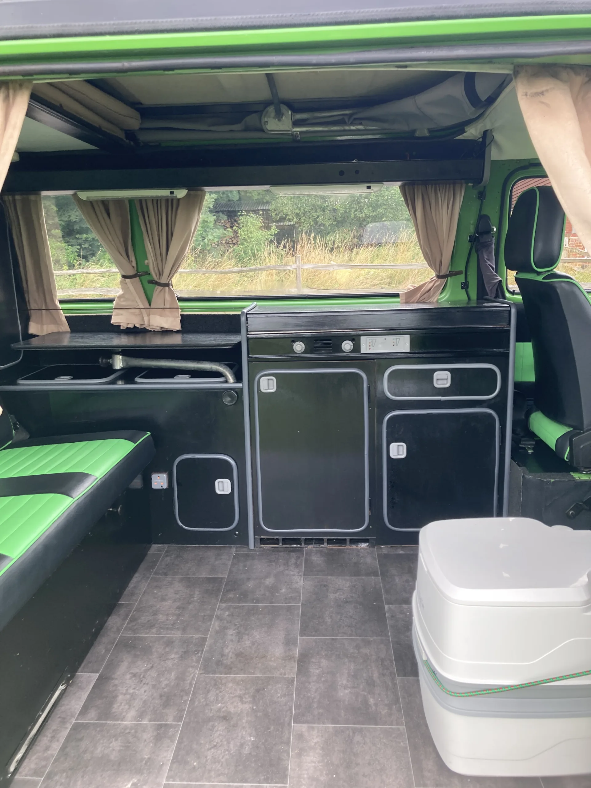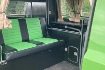 2.0 litre (CU) air-cooled engine fully reconditioned less than 2000 miles since re-build. New heads, carbs, line bored and balanced crank/pistons, new camshaft, big and little ends, new uprated oil pump. During my ownership all rust was cut out and new panels/plate inserted, full replay in original colour. Interior completely re-worked (re-upholstered and new colour scheme), entertainment system fitted with link to reversing camera, driving lights added for dip and main beams. Portaloo included also with an NR Awnings ‘Motor-Villa’ drive-away awning, new pop top canvas fitted professionally by Dub-Hut, driver and passenger door covers, also Wasser-Stopper for winter protection and insulation (Go-Westy). Fridge removed, but two available (we use the extra storage and a small plug-in unit which is sufficient for us. Years MOT, comes with 4 steel wheels and VanHawk tyres in very good condition as spares or winter use to preserve the ‘Carat’ allloys that are fitted currently, also new front wheel bearing ready to be fitted (not needed for the MOT). It has new rear suspension arms, uprated bushes and Bilestein shocks fitted front and rear. It’s 4 berth, has a two-ring burner and working tap/sink. In short Steve is ready for his next owners.