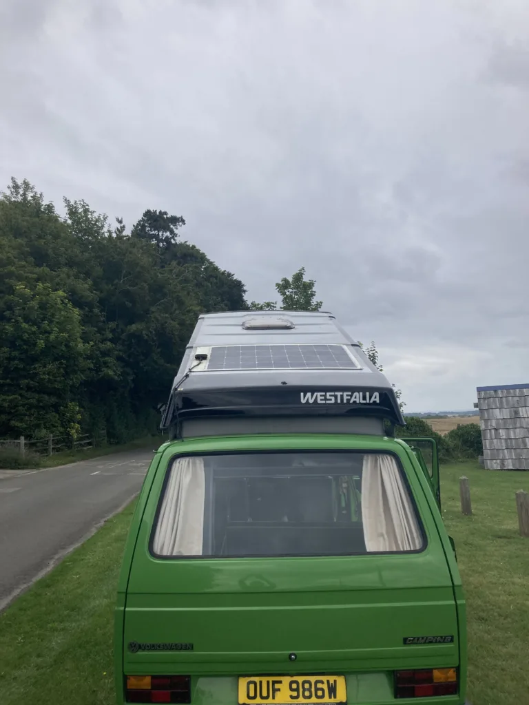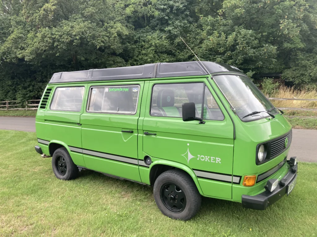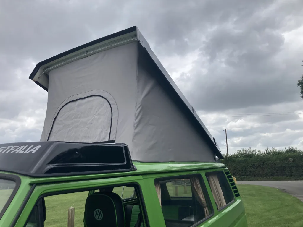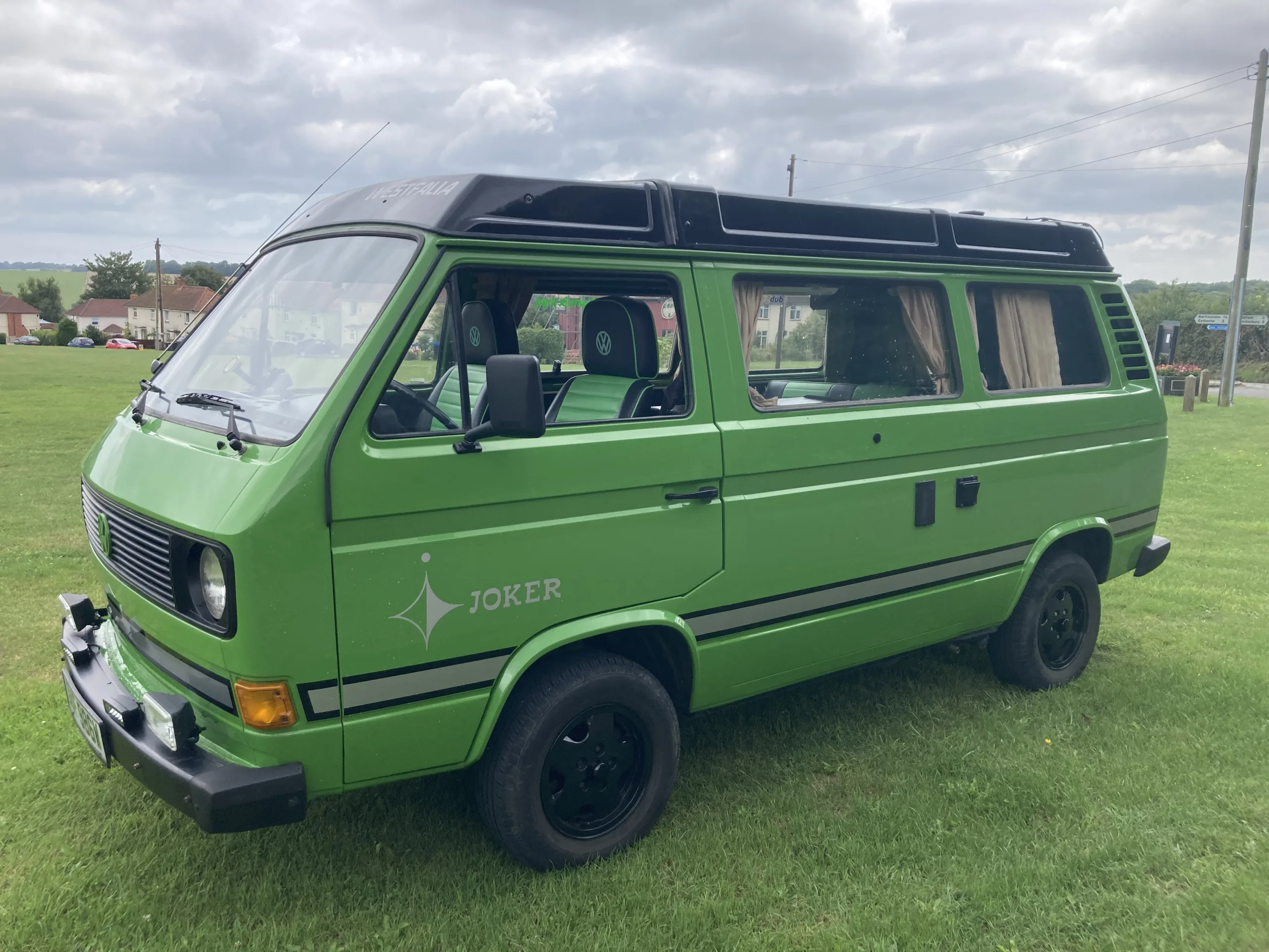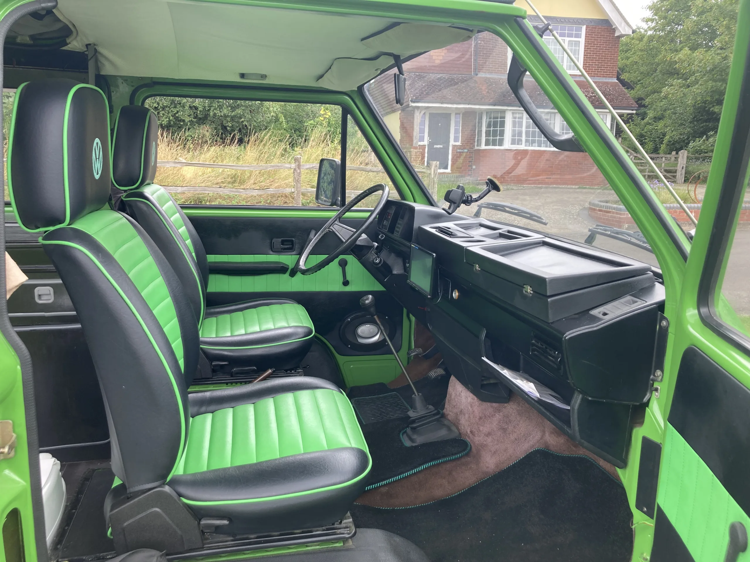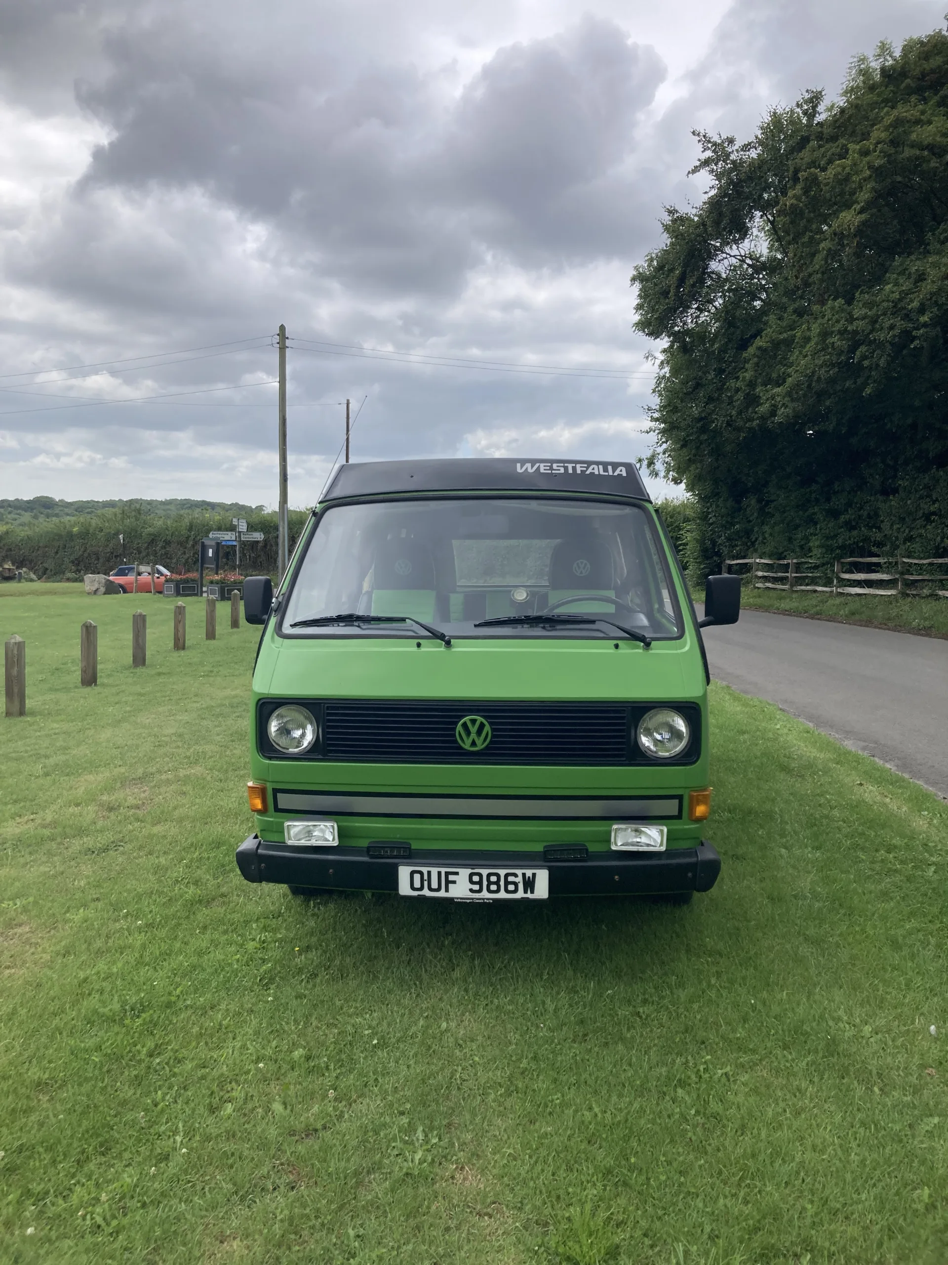 2.0 litre (CU) air-cooled engine fully reconditioned less than 2000 miles since re-build. New heads, carbs, line bored and balanced crank/pistons, new camshaft, big and little ends, new uprated oil pump. During my ownership all rust was cut out and new panels/plate inserted, full replay in original colour. Interior completely re-worked (re-upholstered and new colour scheme), entertainment system fitted with link to reversing camera, driving lights added for dip and main beams. Portaloo included also with an NR Awnings ‘Motor-Villa’ drive-away awning, new pop top canvas fitted professionally by Dub-Hut, driver and passenger door covers, also Wasser-Stopper for winter protection and insulation (Go-Westy). Fridge removed, but two available (we use the extra storage and a small plug-in unit which is sufficient for us. Years MOT, comes with 4 steel wheels and VanHawk tyres in very good condition as spares or winter use to preserve the ‘Carat’ allloys that are fitted currently, also new front wheel bearing ready to be fitted (not needed for the MOT). It has new rear suspension arms, uprated bushes and Bilestein shocks fitted front and rear. It’s 4 berth, has a two-ring burner and working tap/sink. In short Steve is ready for his next owners.