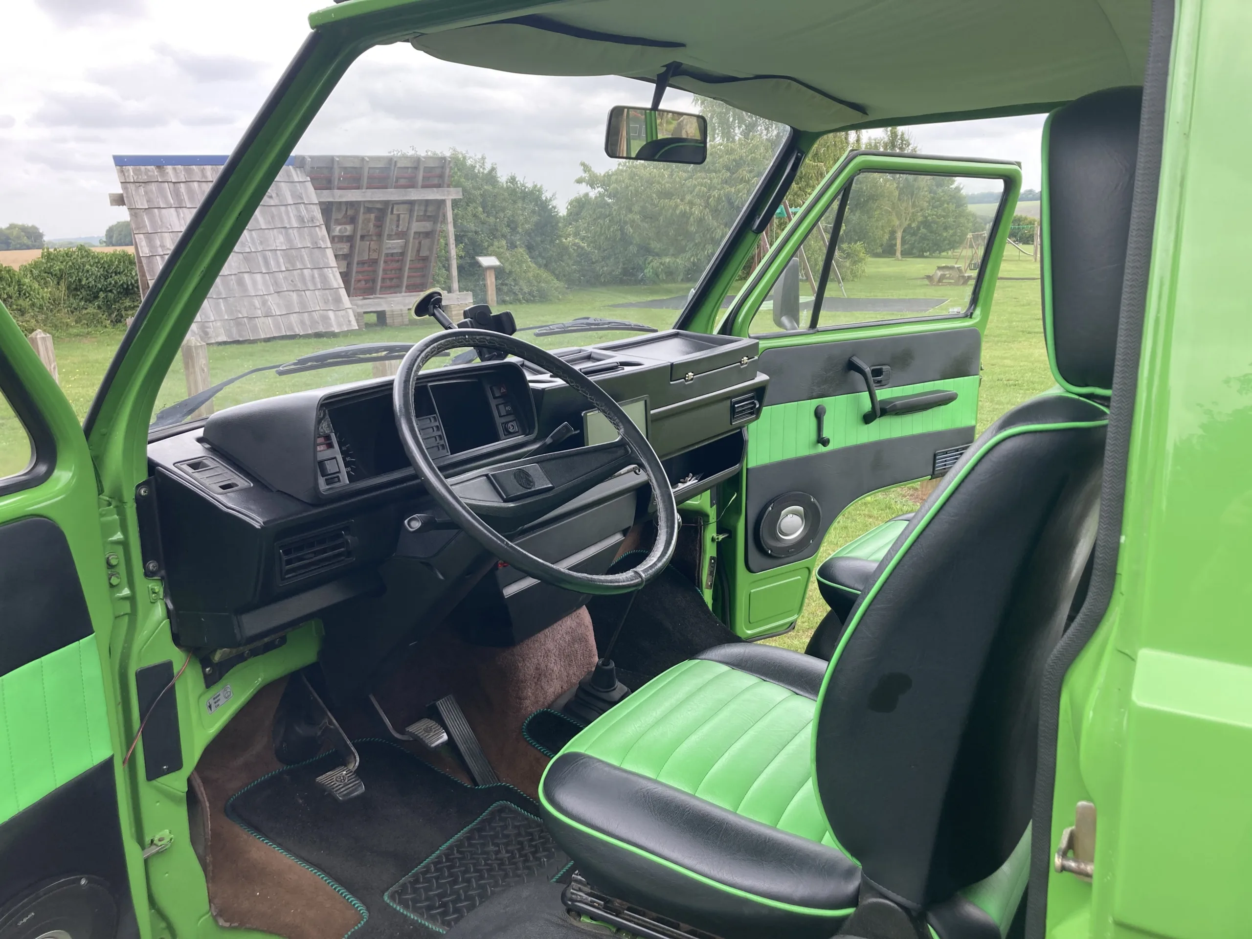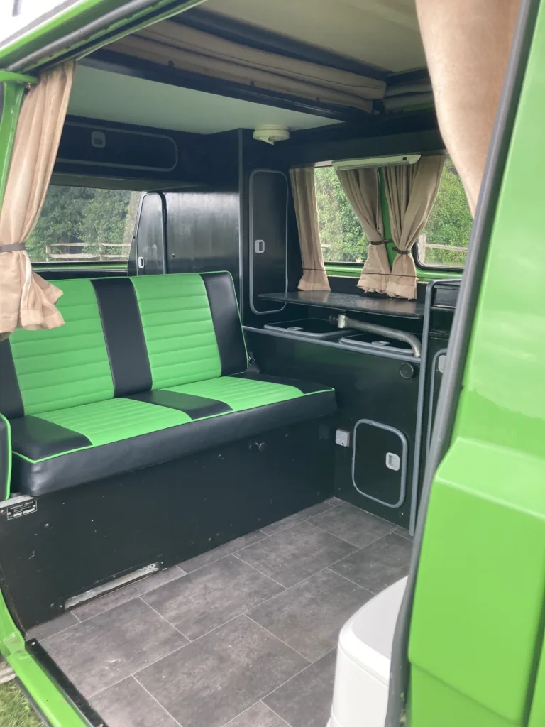 VW Westfalia with modified upholstery and cupboards colour-scheme