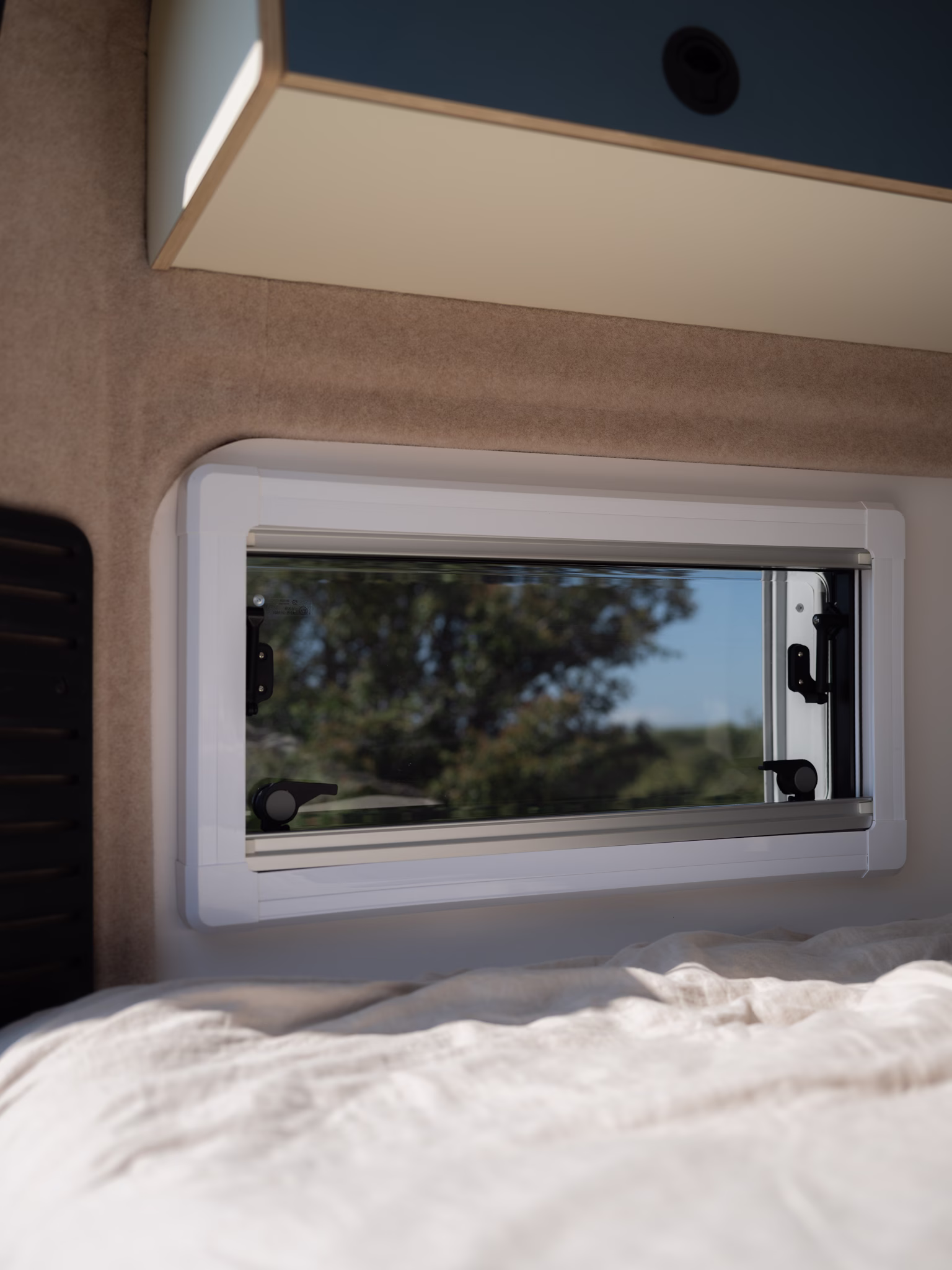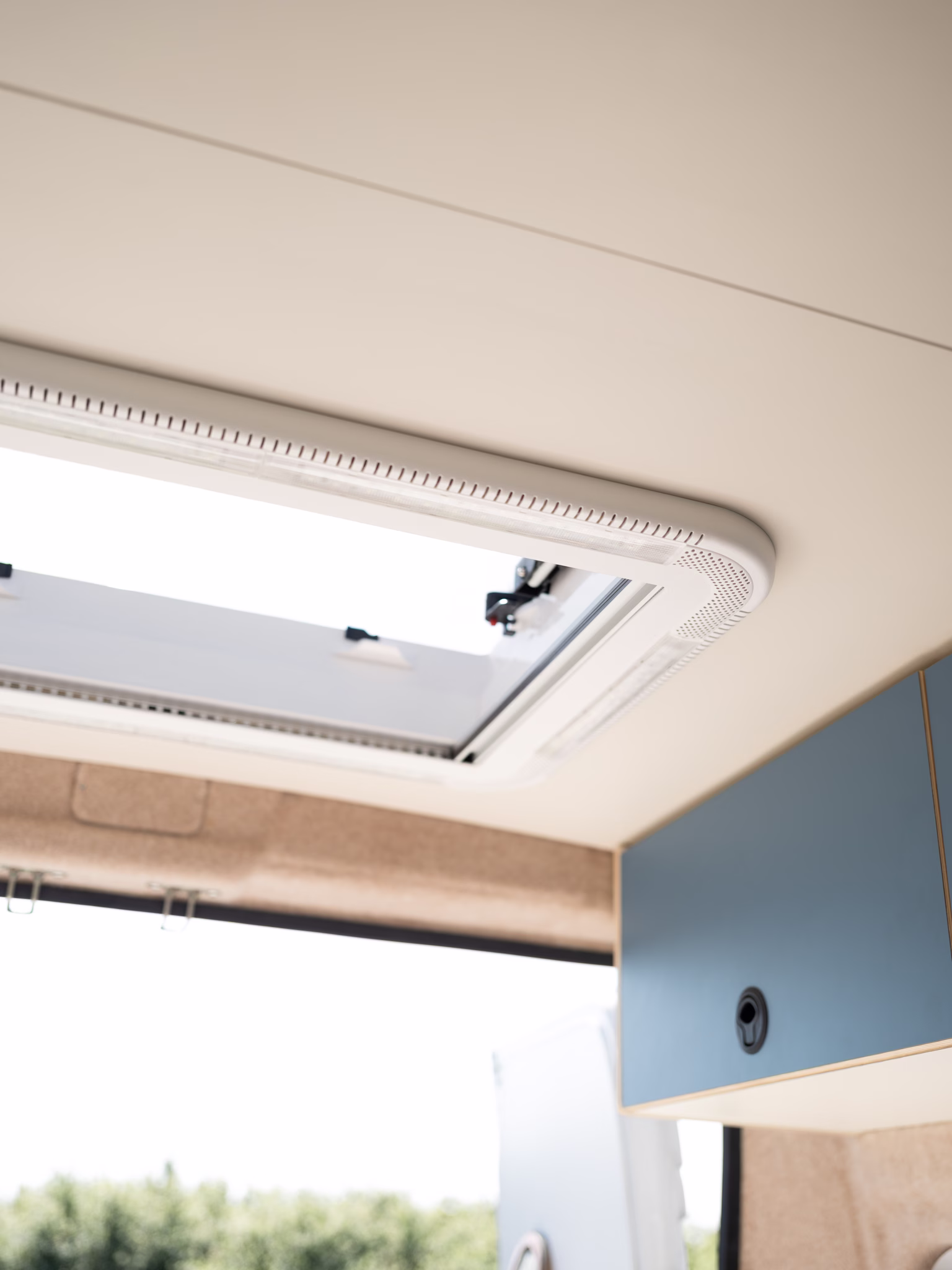 All windows are fitted with integrated blinds and mosquito nets as standard, and outside there’s an exterior light for relaxed evenings by the van.