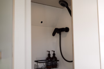 At the rear, a full size shower and cassette toilet double as a practical drying room, ideal after wet and muddy days outdoors.