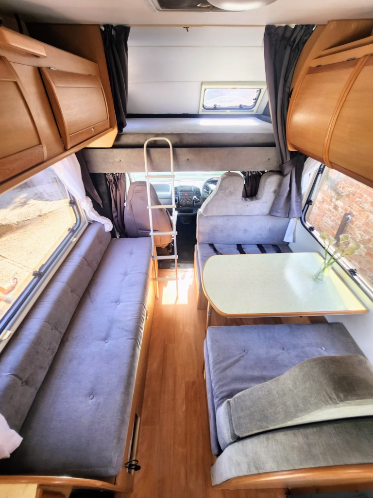 Meet your new travelling buddy – A stunning newly-converted powerful 2.8L Fiat Ducato motorhome with a fresh & modern feel, boasting a spacious lounge in the rear, rear-side kitchen area, sleeps up to 6, with a generous list of leisure facilities for your travels, she’s the ideal fit for couples, families & adventurers looking to venture the great outdoors in comfort & style.