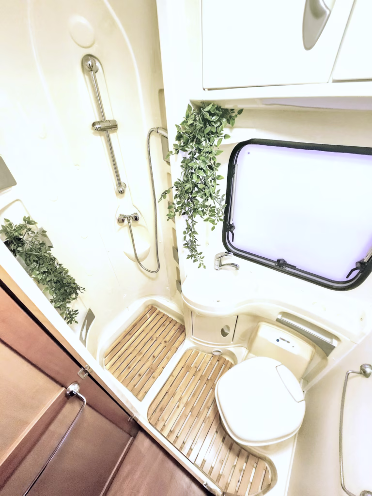 => Multiple 240v mains plugs throughout the camper give you easy-access charging ports for all of your electronics