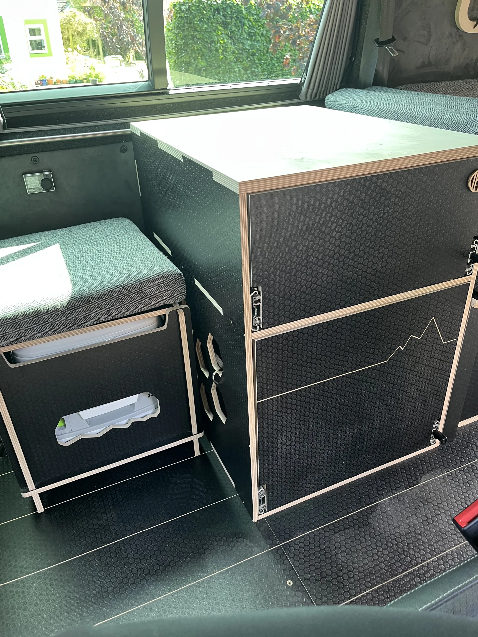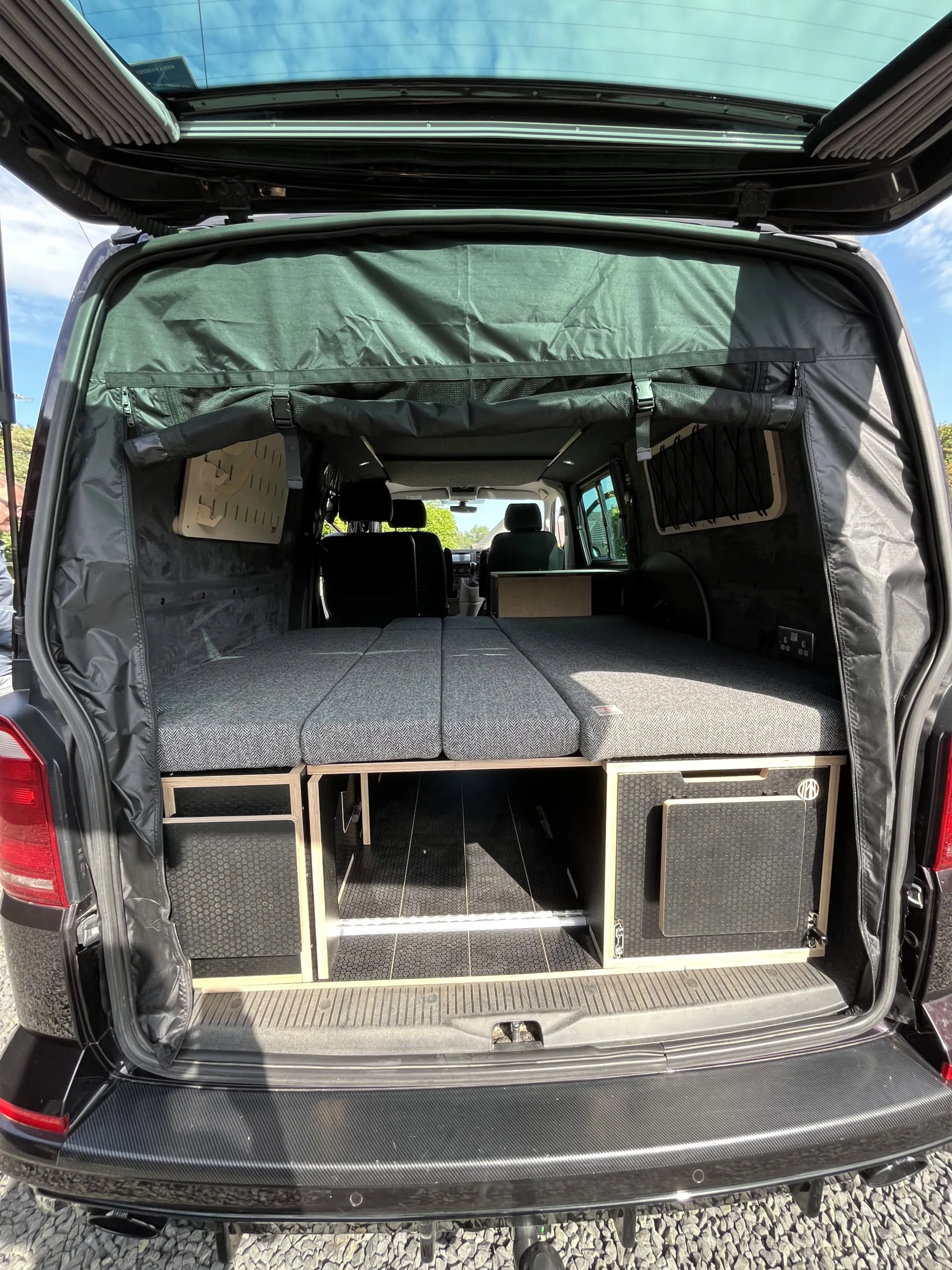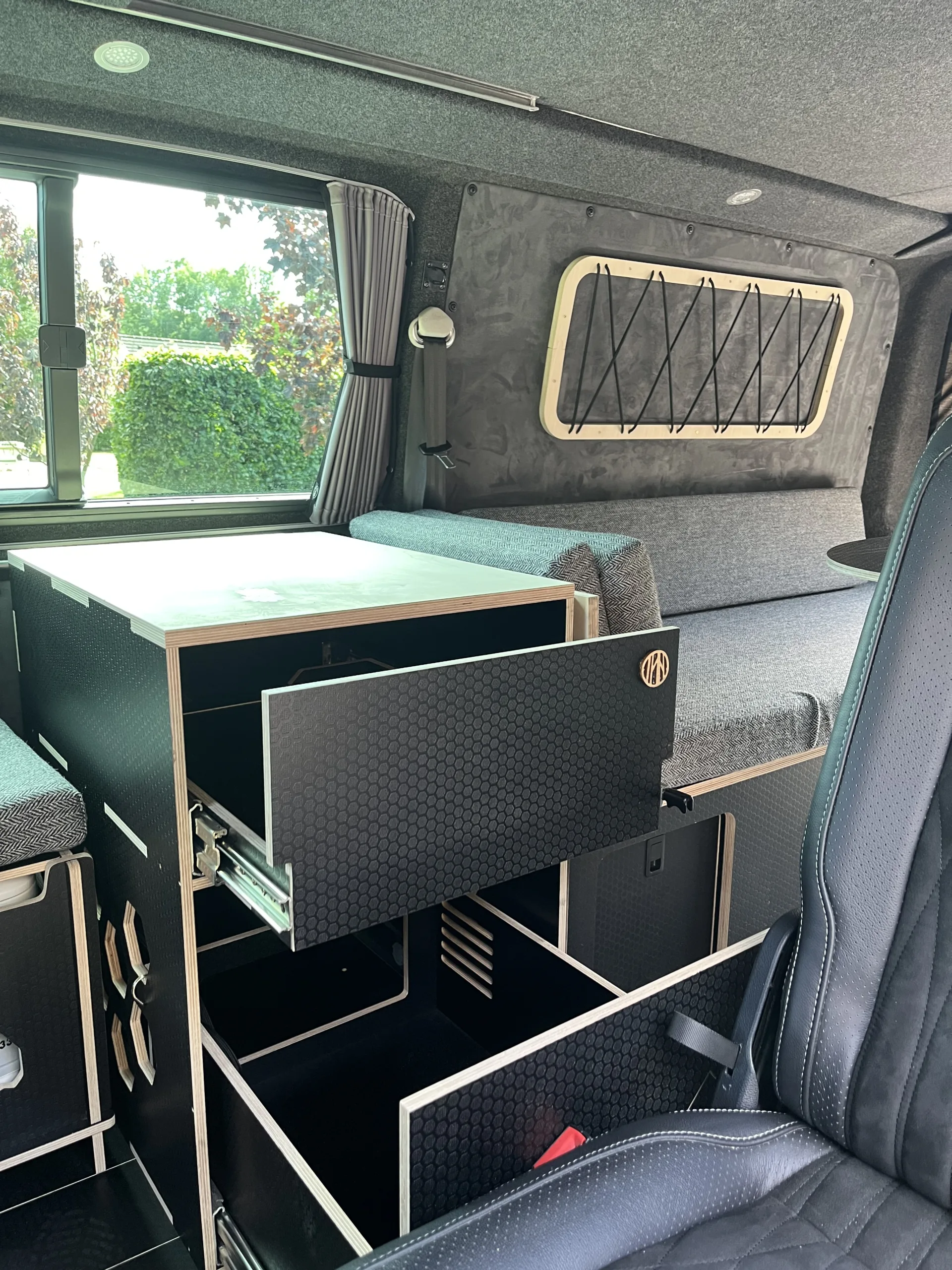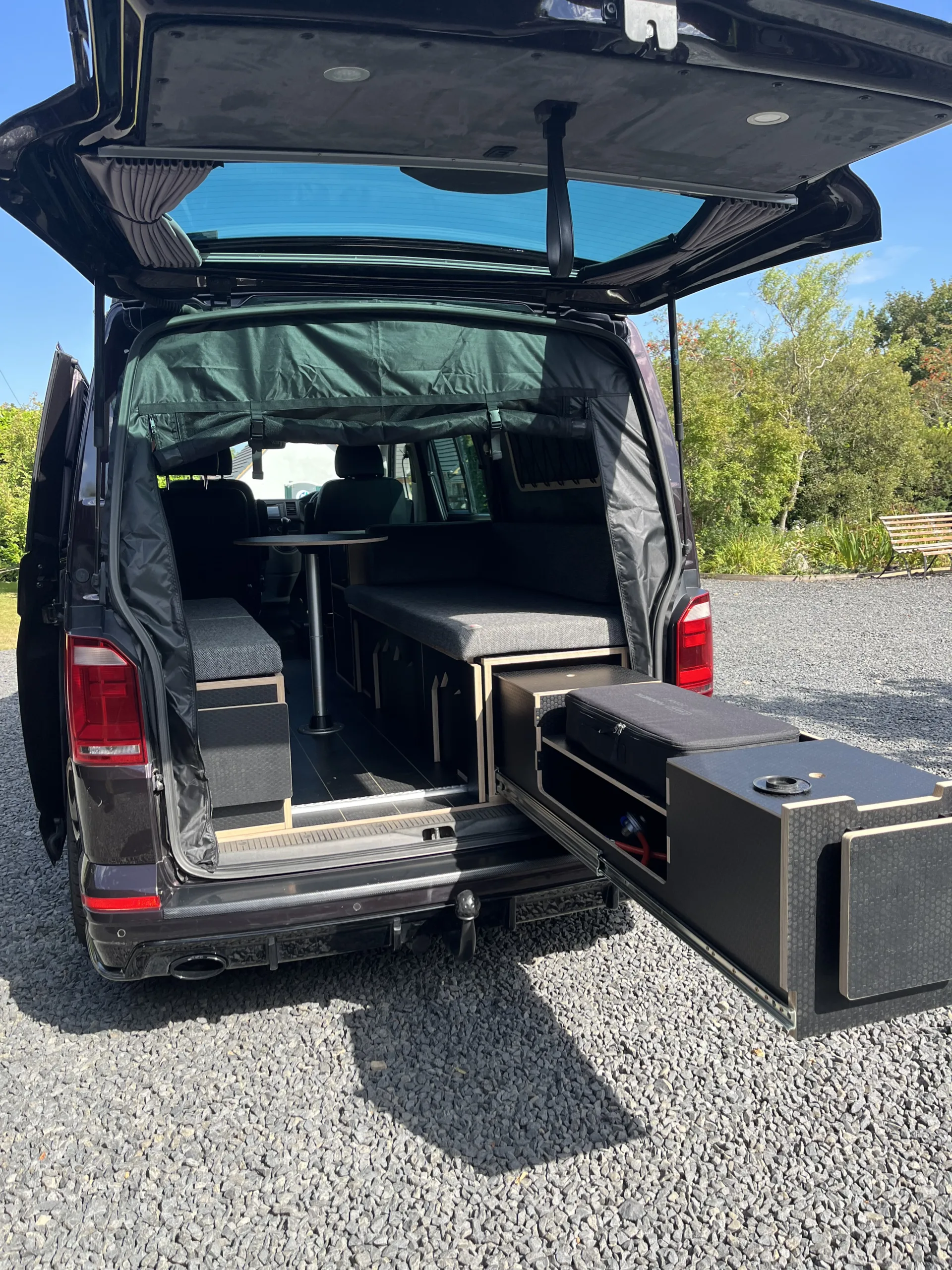 We bought this as a Leighton kombi conversion in 2022 and used it mainly for mountain biking. We installed the electrics pack so we could use it for the odd overnight stay, then found a great interior from The Ply Guys that meant we could use it as a proper camper.