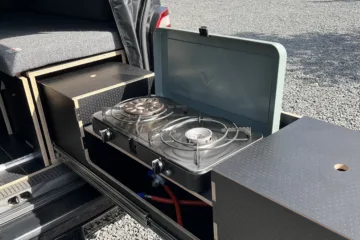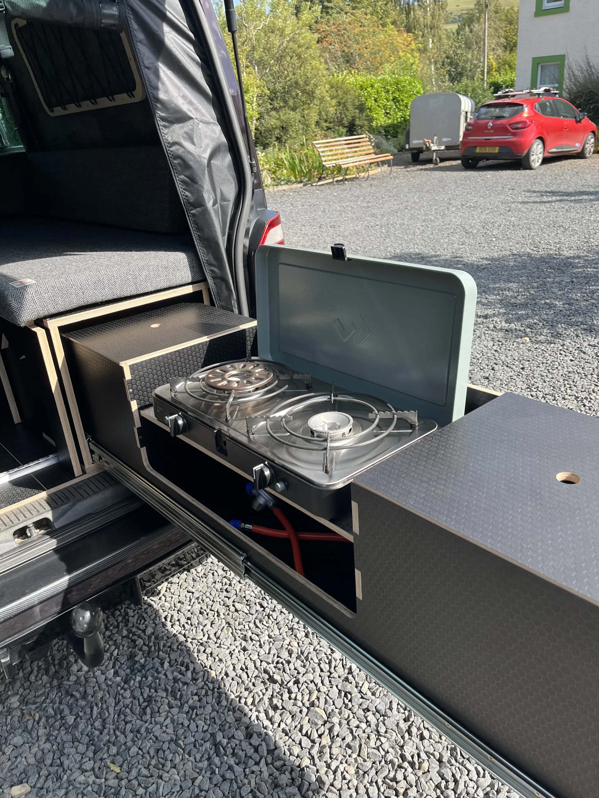 Torridon bed with slide out cook station with Cadac 2 cookstove
