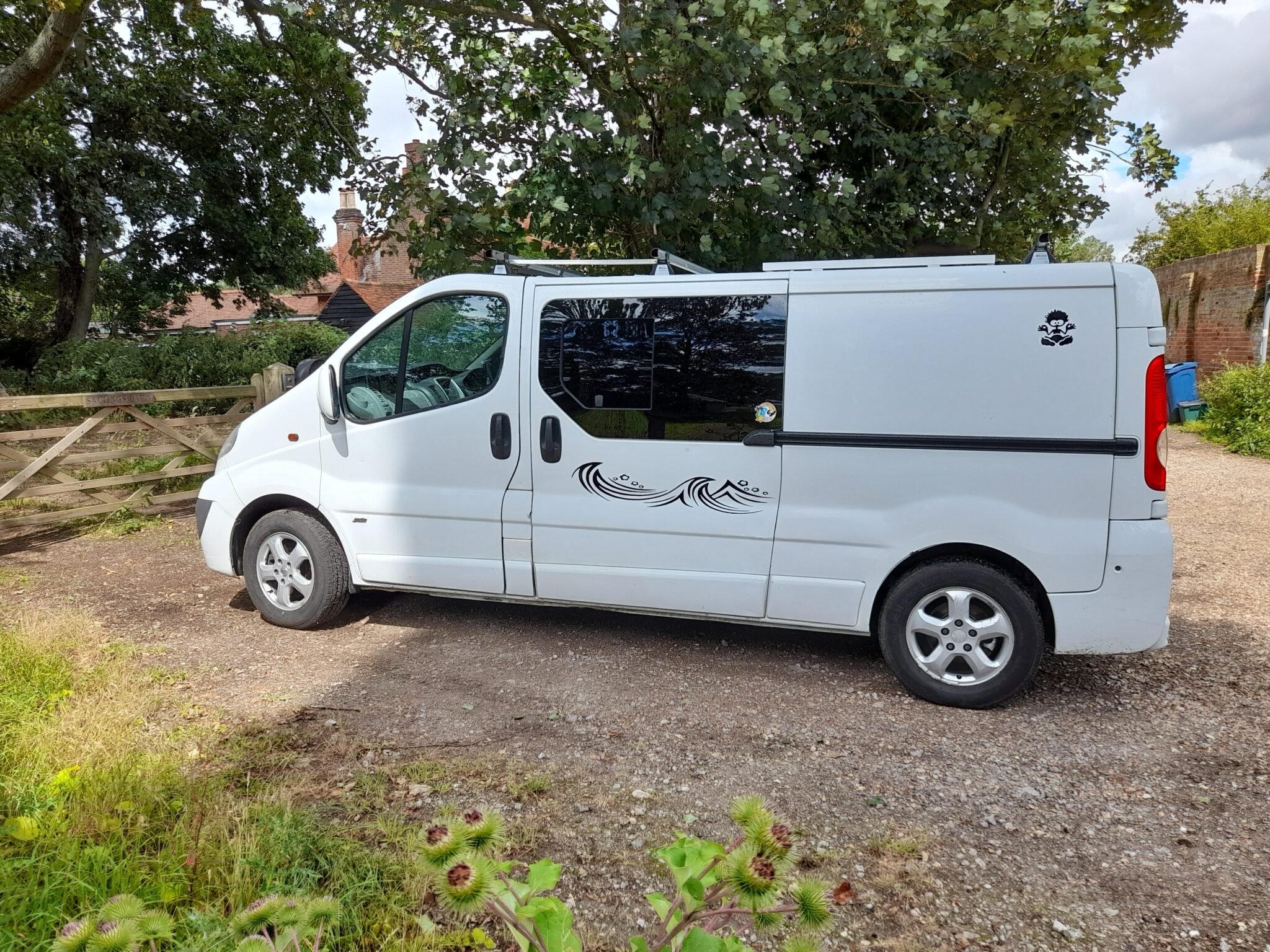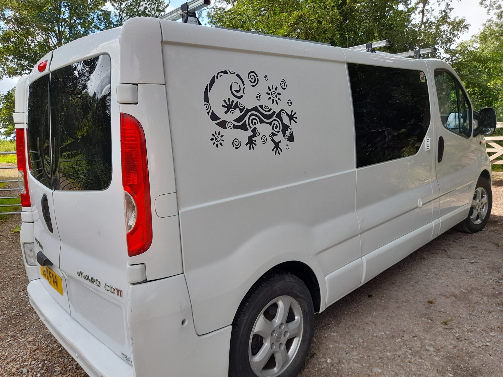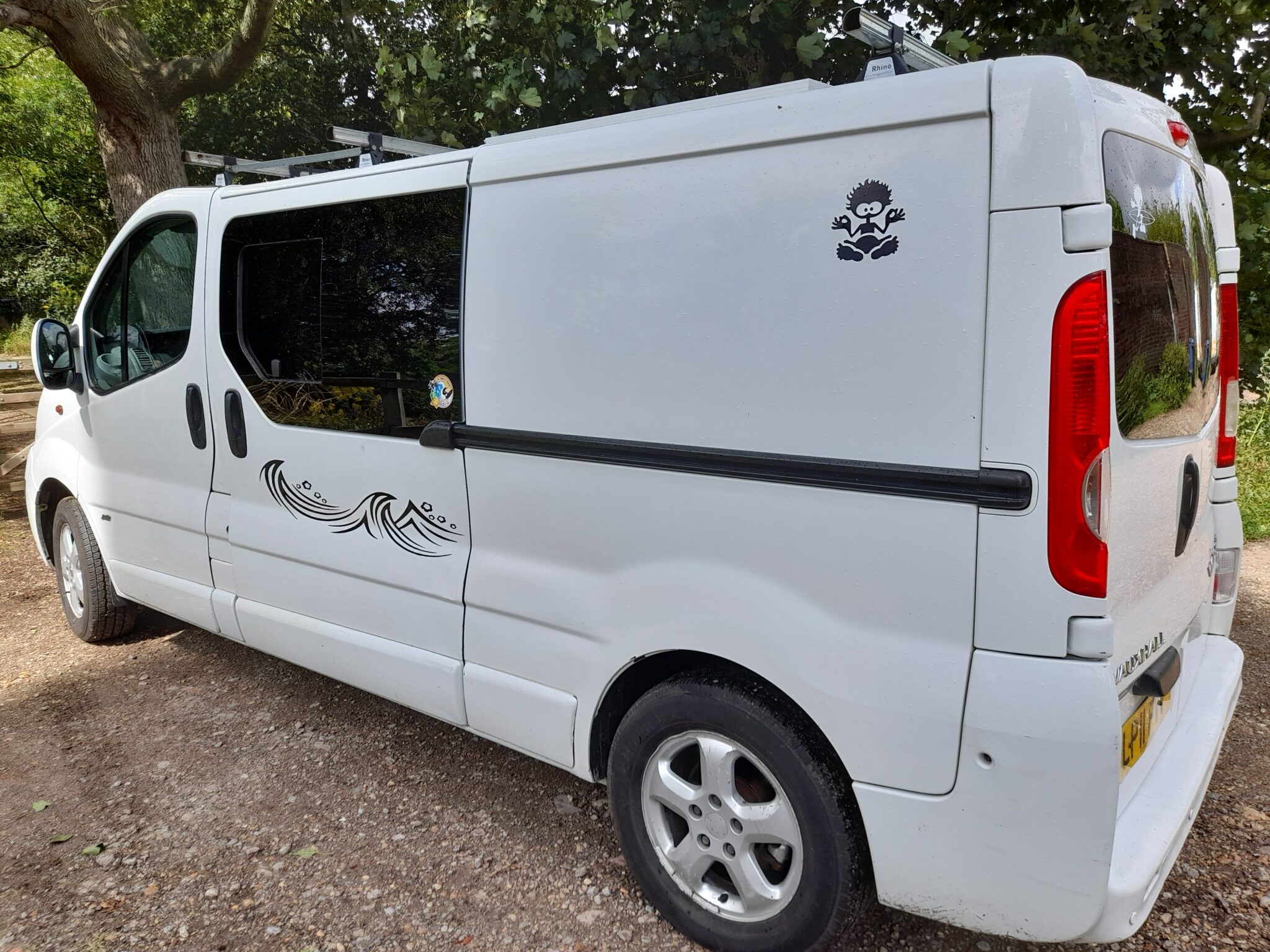 Stunning, completely bespoke and totally unique mint condition 11 reg vivaro mwb campervan conversion. Professionally converted (by van conversion company) and no expense spared. Low mileage 118K. Mechanically in excellent condition – drives perfectly and will easily go another 100,000 if maintained. Light and spacious interior. Ideal for off grid camping – fitted with solar panels to keep the leisure battery charged and to run 12v equipment while on a campsite or off grid. Large rear seating/dining area folds down into exceptionally comfortable large double bed with custom upholstery. The kitchen has a brand new dometic stainless steel double gas hob and sink with on demand electric tap. Plenty of storage space at rear and under seating area as well as additional cupboard space built into wall. Digital battery display panel with power points, light and gas switches. Brand new large fridge can run on both solar and gas to optimise off grid use. Roof bars for canoes/surf/paddle boards etc. MOT until Feb 2022. Diesel.