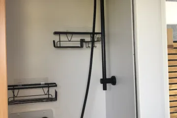 Large internal wet room with hot/cold shower, rooflight and heater vents – doubles as a drying room