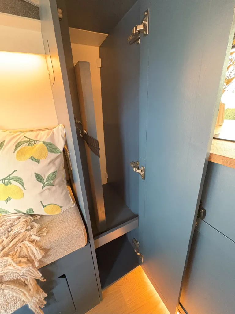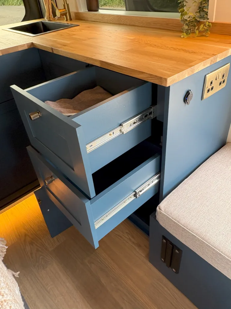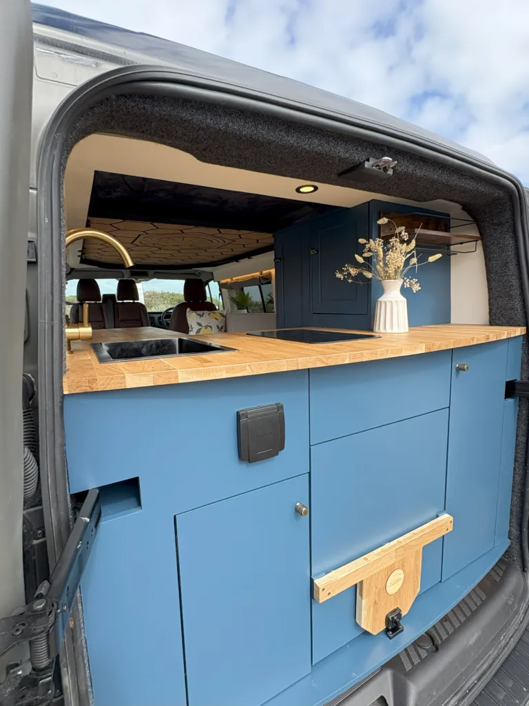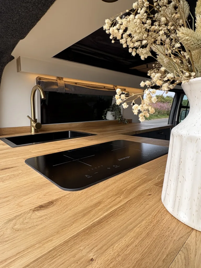 This campervan has been built completely gas-free, with no gas onboard at all. That means less fuss, less hassle, and a much safer, modern system powered entirely by a reliable off-grid electrical setup and induction hob.