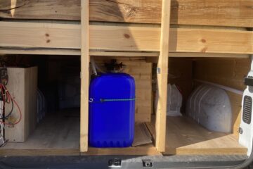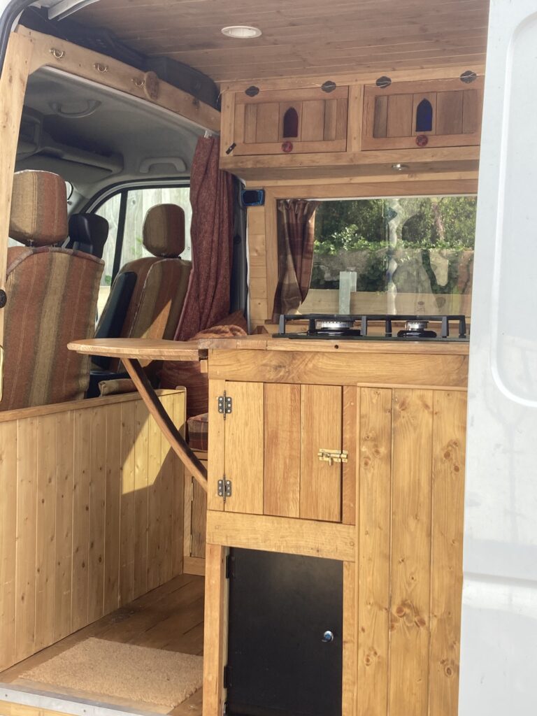 – 1 smaller thin cupboard cleverly accessible from inside and outside van