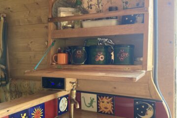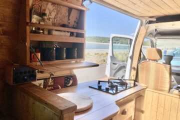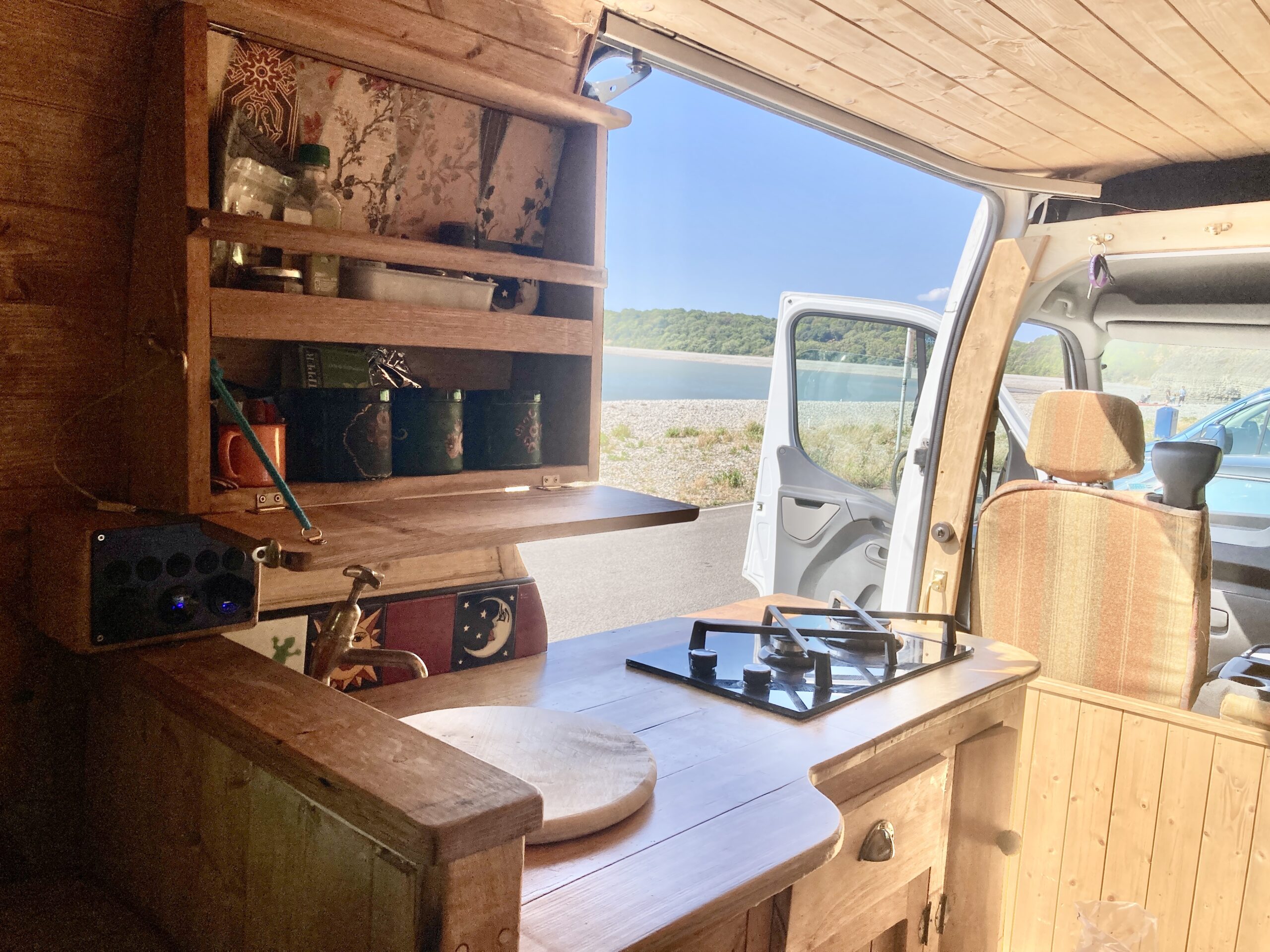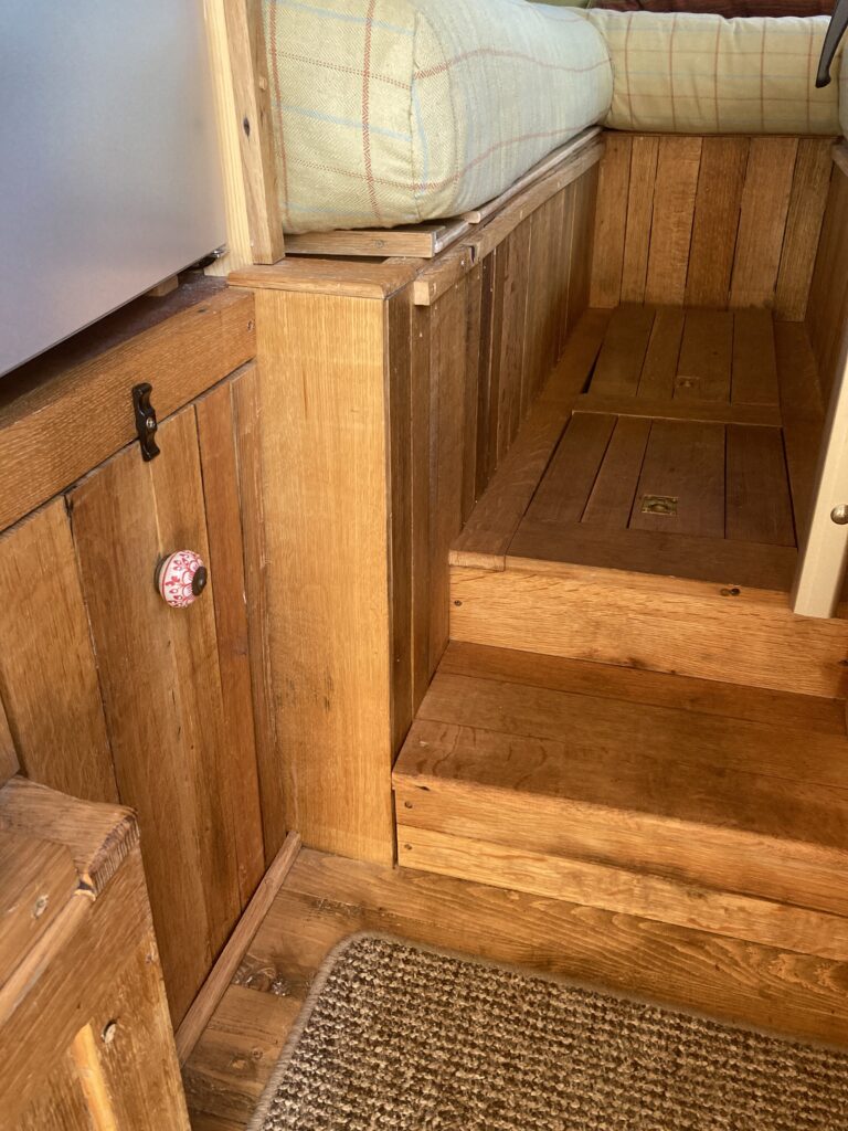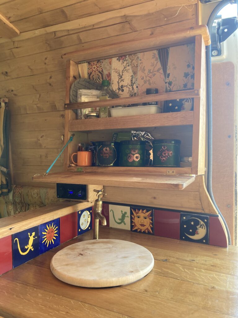 Selkie was one of the vans on display with other Rustic Simplicity creations at the Quirky Camper festival May 2022. Their creations are widely regarded as first choice for vanlifers looking for original high quality craftmanship in their campervan. You wonβt find lots of high-tech equipment draining the battery in these vans, their beauty and value is in the high quality and uniqueness of the furniture and fittings.