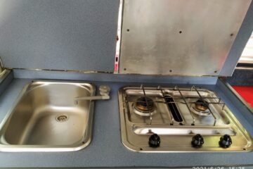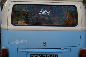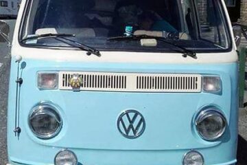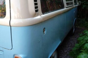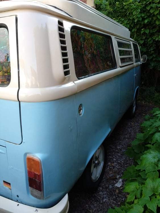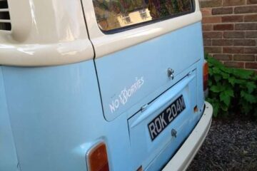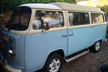 1973 RHD T2 Bay Campervan for sale. 1.6 engine, 12 months MOT (though exempt due to age). Mileage 68,114. Engine upgraded with quality twin carbs and larger sump for more power & better cooling system. Full service history with documentation of repairs including new inner and outer sills, general bodywork repairs, refurbished starter motor, reconditioned engine block and easy gear change making this VW a smooth ride. Interior refurbished but dashboard and steering wheel original. Fitted with new leisure battery, full electric hook-up with internal sockets and TV aerial point. Fridge, gas cooker and sink plus original rock & roll bed with plenty of storage. Original pop-top will need some attention. Body work sound but like many VW camper vans of this age there is a little rust and bubbling but only minor. Original bumpers and smart alloy wheels compliments the stylish baby blue & cream exterior. Included Air Vango Awning, hook-up cable and a few accessories. £18,500 Ono.