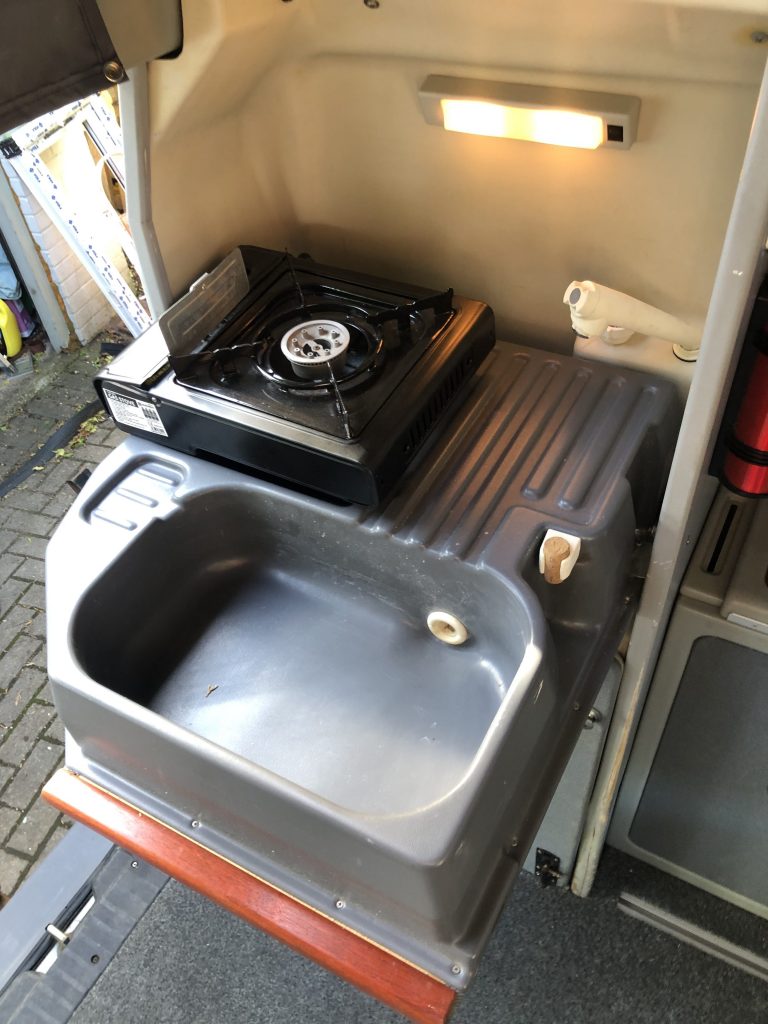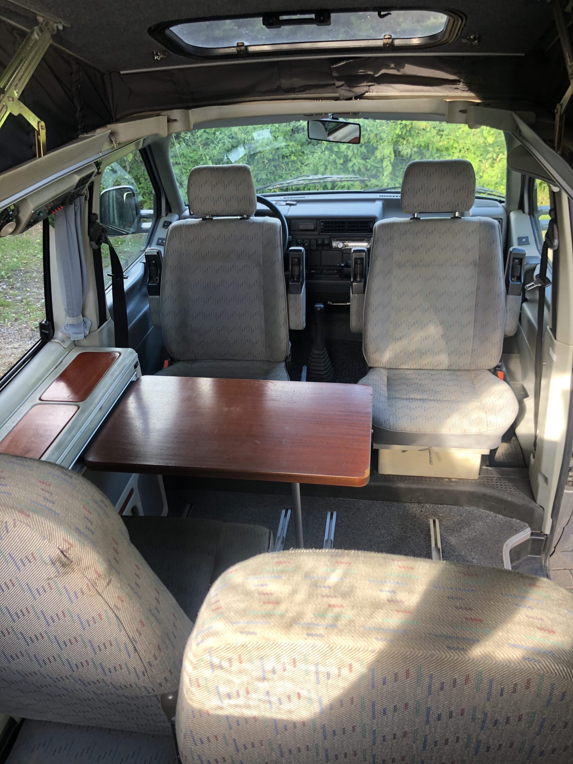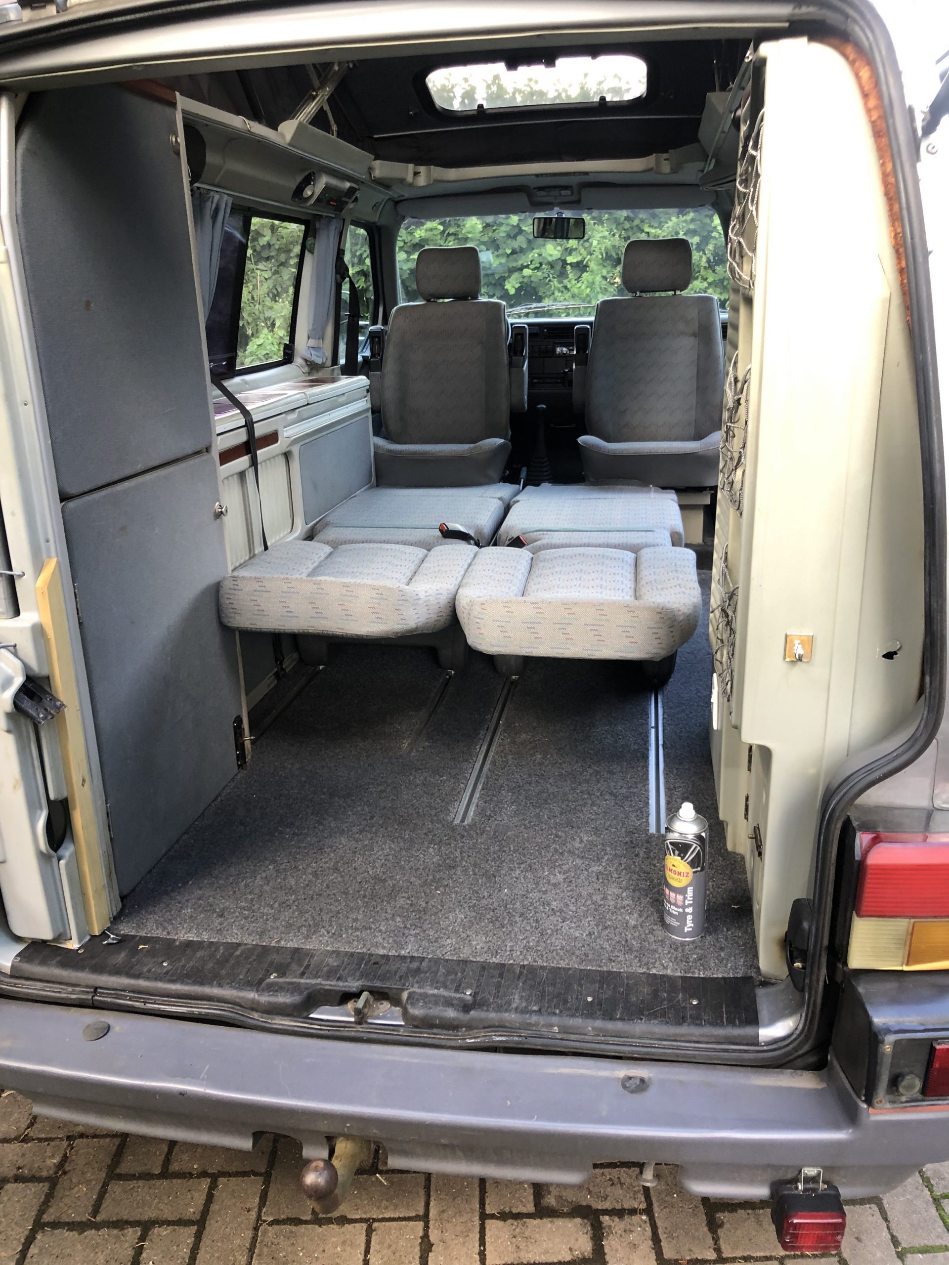 This camper is factory fitted and was imported from Germany in 2006 and did suffer a bit of neglect through lack of use. We have had a new pop top fitted, all belts and water pump changed, new brake lines and full service. We have owned and used it the past two years but have now got something a bit bigger. It has a lovely retro feel with all original fittings and curtains etc. has a hot water tank heated whilst driving. We had to fit a new diesel heater which is easily accessible for maintenance. As with a vehicle of this age it could still be improved upon but is a lovely useable van in very good condition for its age. Herman the German to us 😊. The speedo etc is in KPH, I added mag wheels to improve the look but this put the speedo out a bit but have retro fitted a speedo in mph. Petrol gauge not that accurate but can fix if the price is right