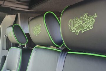 – Custom stitched leather seating throughout, colour coded to the silver/green accents of the exterior