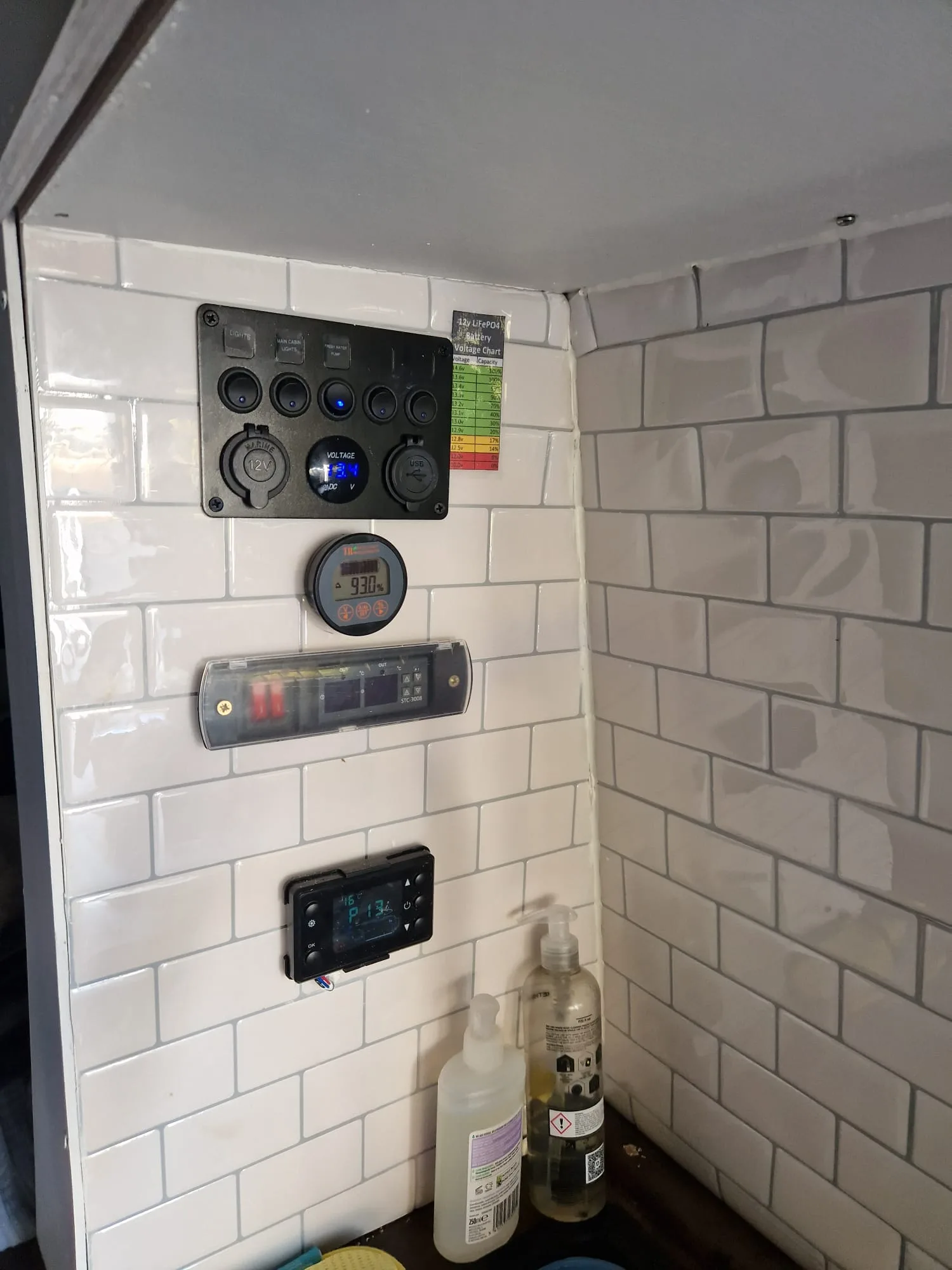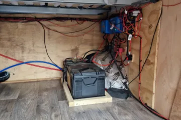 Electrics based on 400w single.solat panel and 200a lithium battery that has BMS and 7a 120v charger.