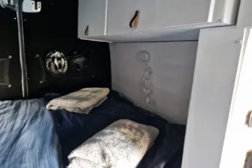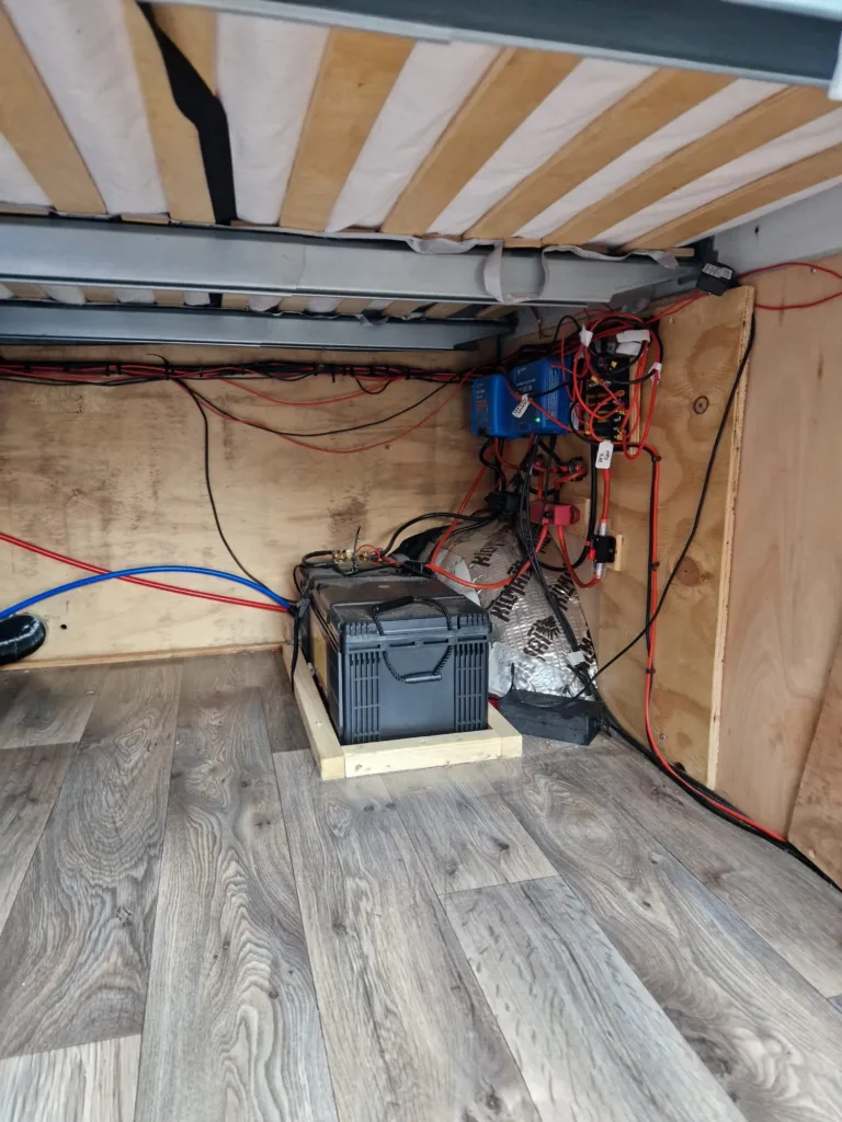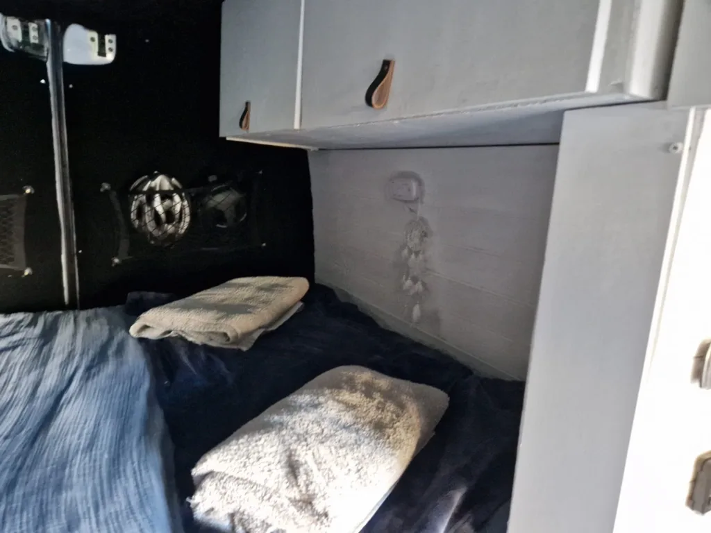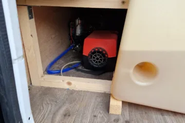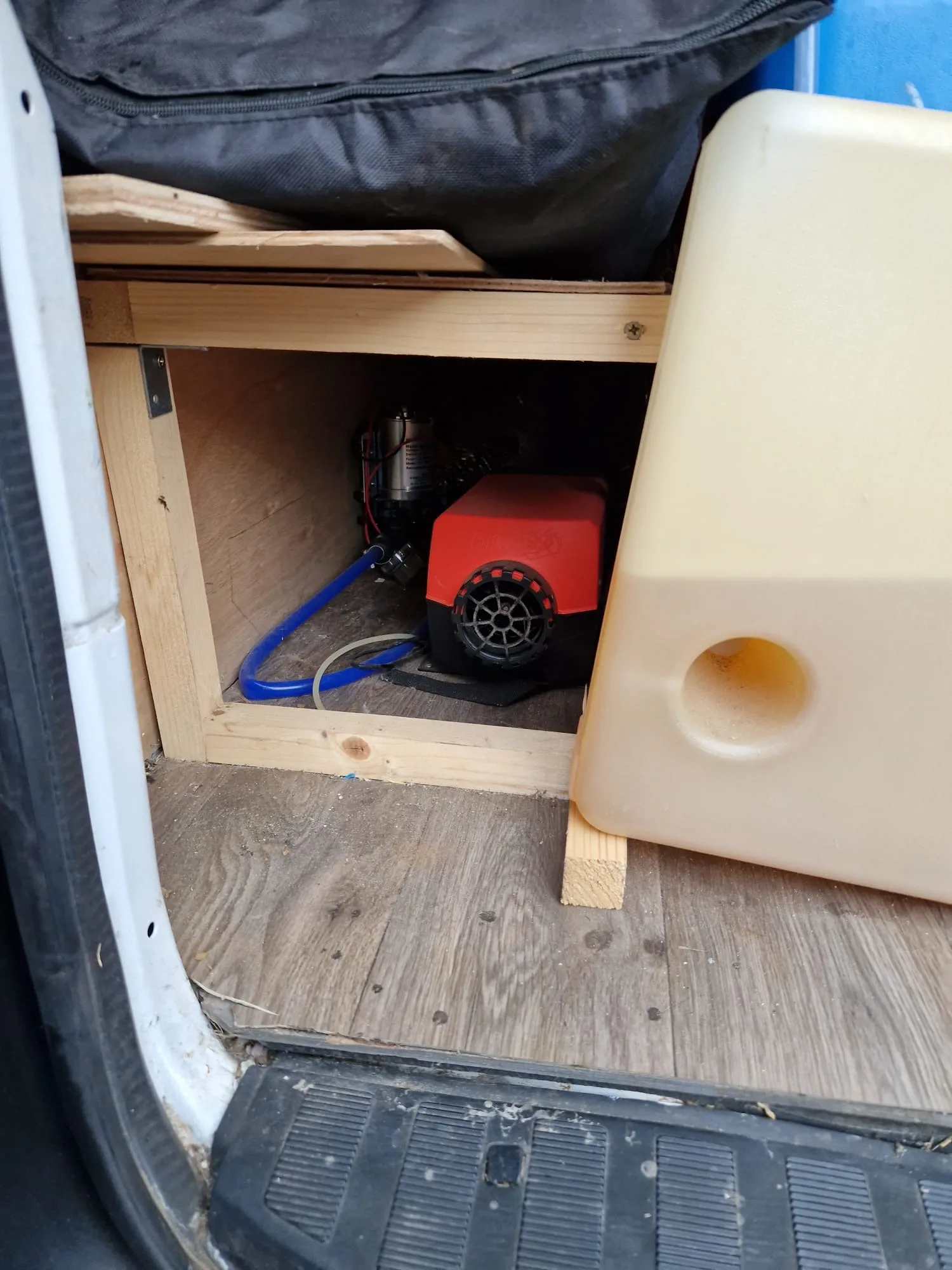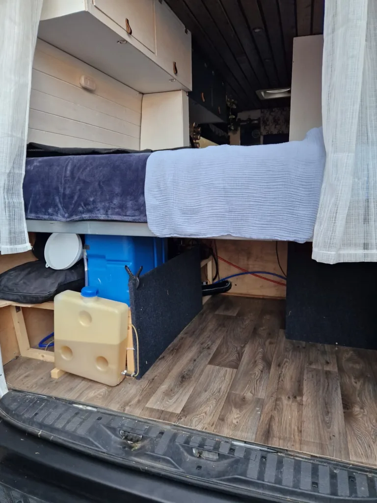 Heating, plumbing and water. 70l fiamma internal water tank. Diesel heater, Bobil hybrid water system (heat water from solar, driving and diesel heater)