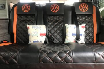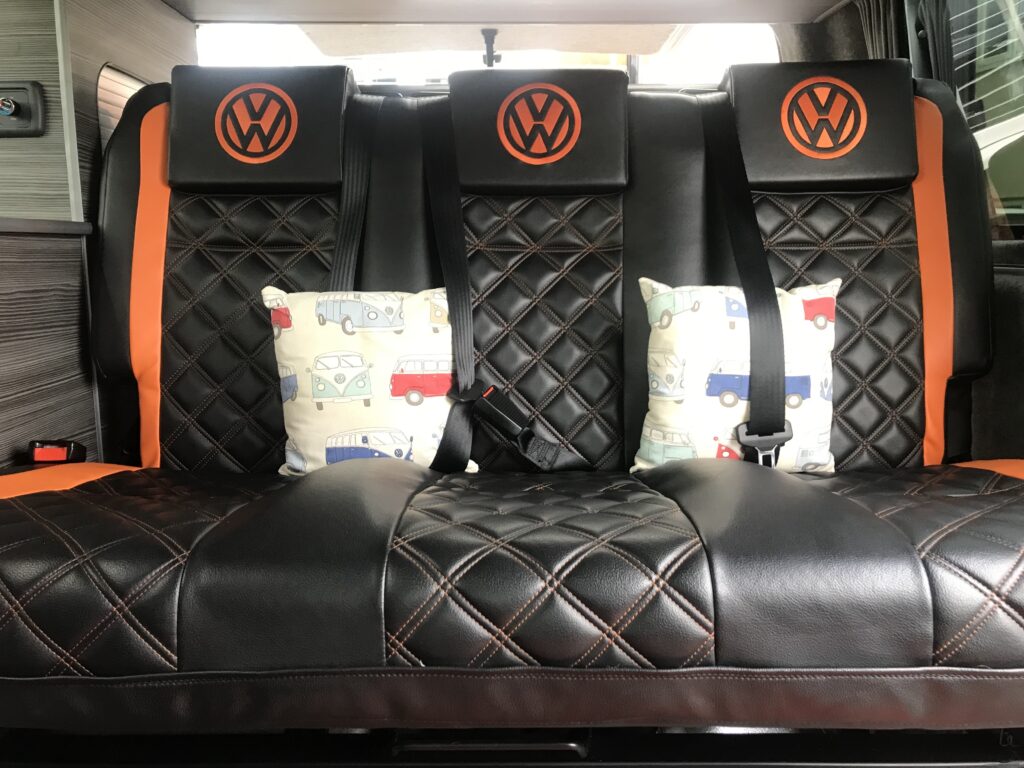 Captain’s driver seat. Twin passenger front seat with Kampa swivel base. Three contoured and belted seats in the rear making this a rare 6 seater camper.
