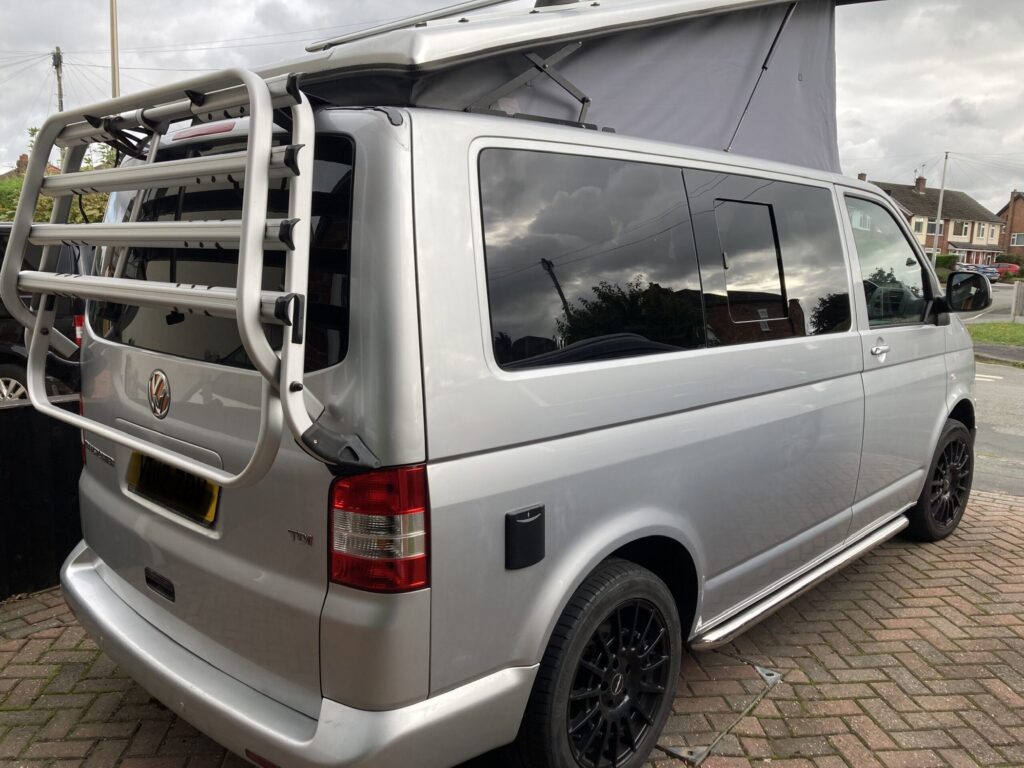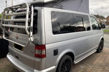 First used as a fleet panel van for a fixings delivery company. Bought from Swansea Campers as a panel van in 2017 with mileage around 111k. They smartened it up with a new front assembly and the black alloys. Then we had it converted to our bespoke camper design by Mike at CMC in Cheshire. Mileage currently just under 165k.