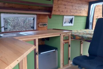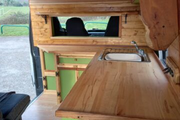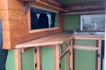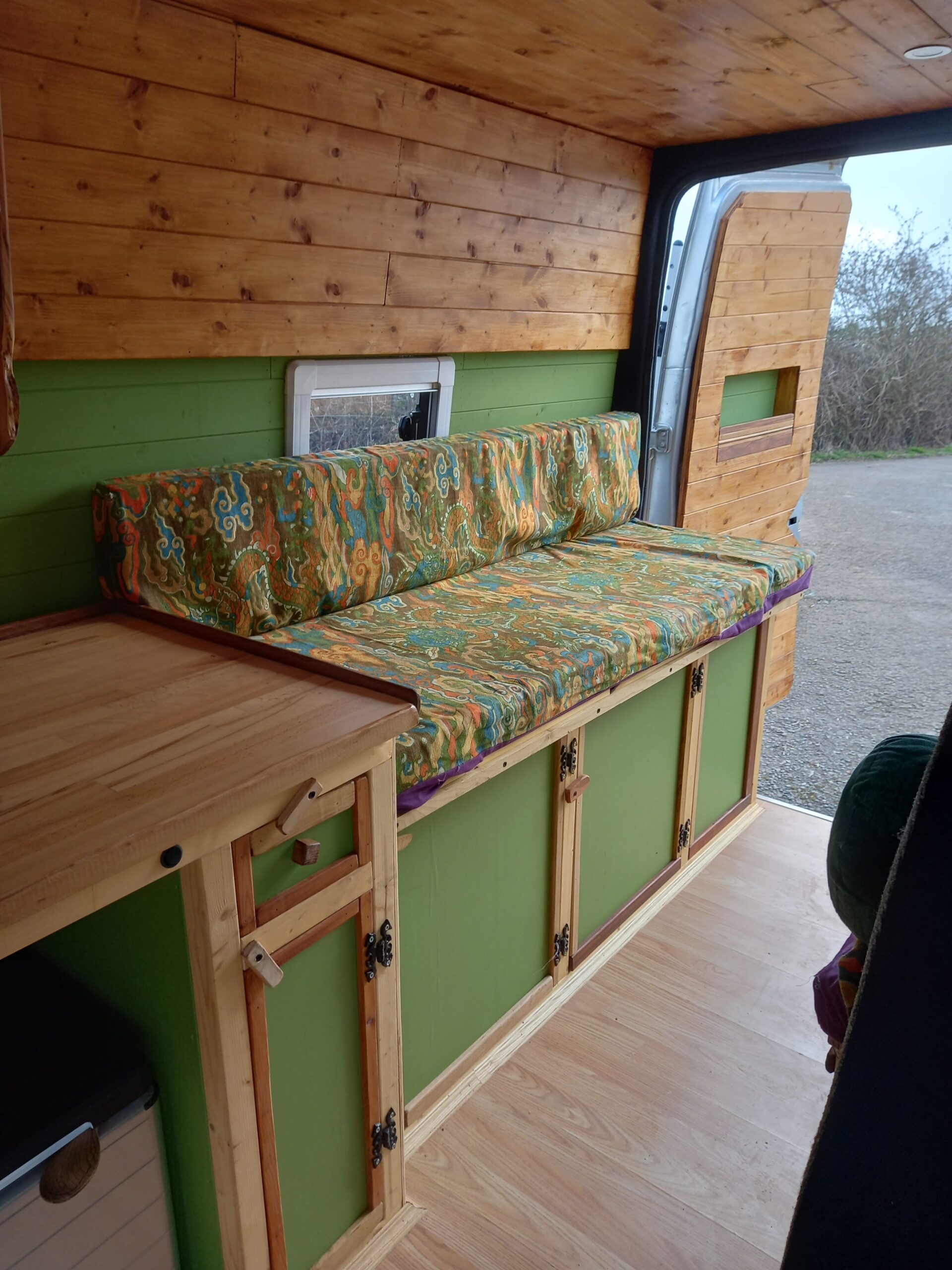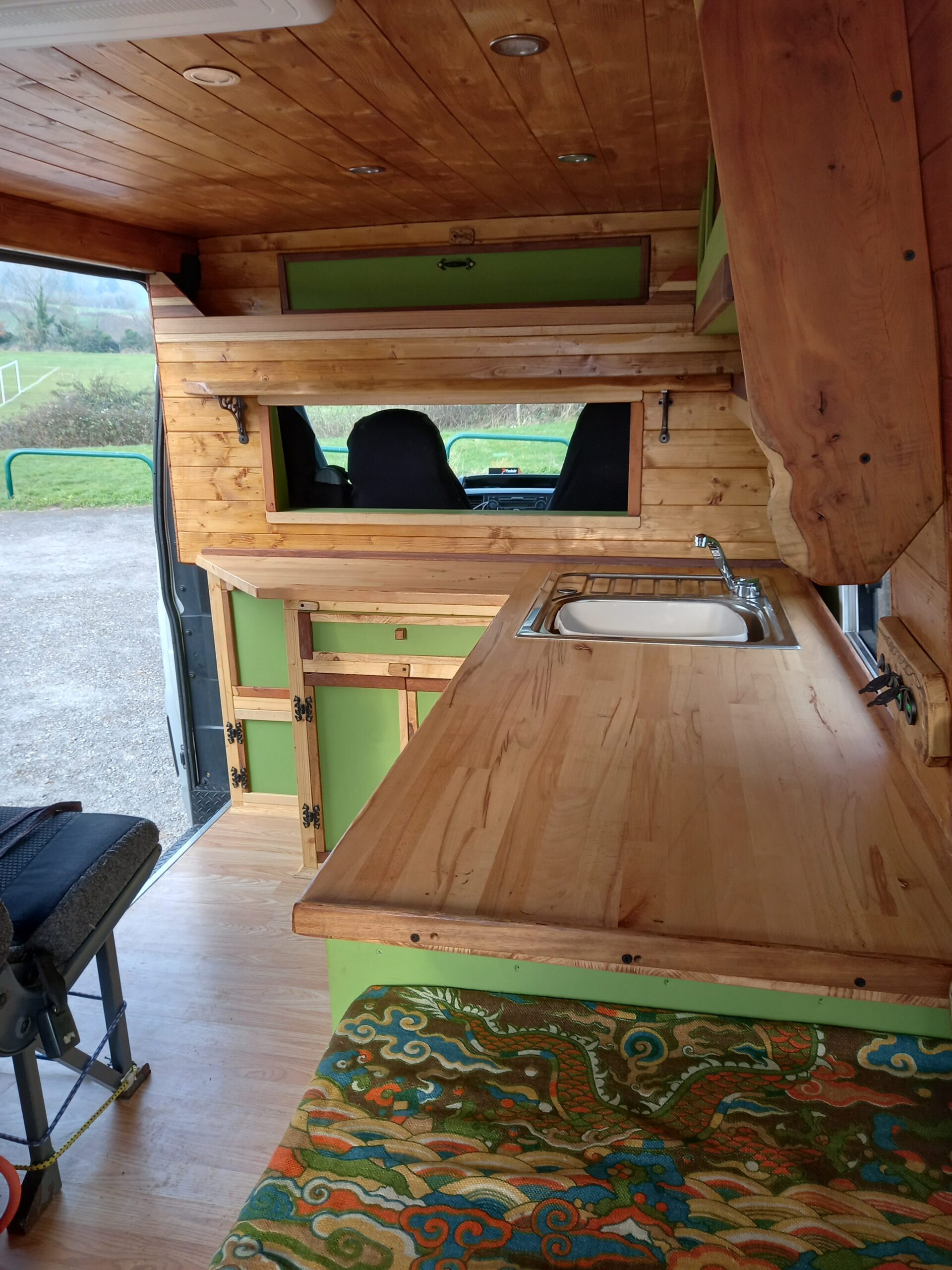 Made from beautiful wood and modern motorhome products, designed to be unique with effective use of space, With lots of storage and character. It has simple features inside but its got what you need for an off grid expedition.