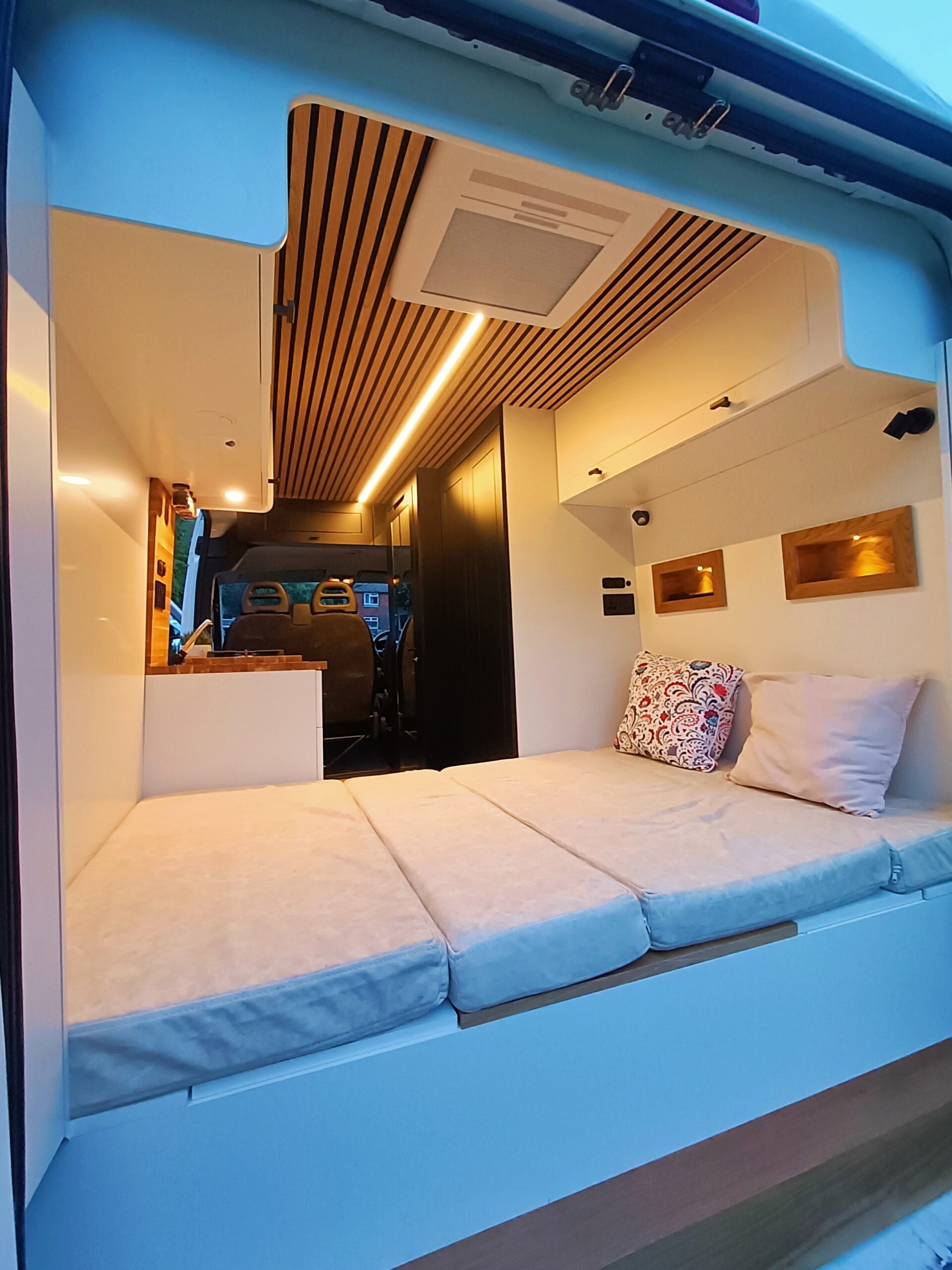Comes with 4″ bespoke size cushions that create a 4ft x6ft bed mattress and additional 2ft x 6ft mattress which fits between the benches and creates additional sleeping area.