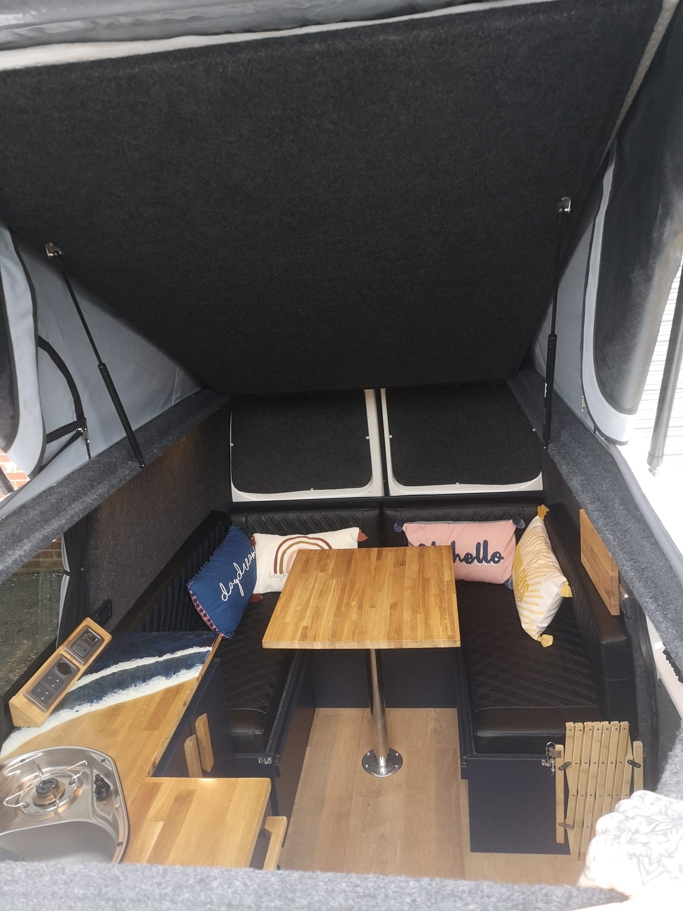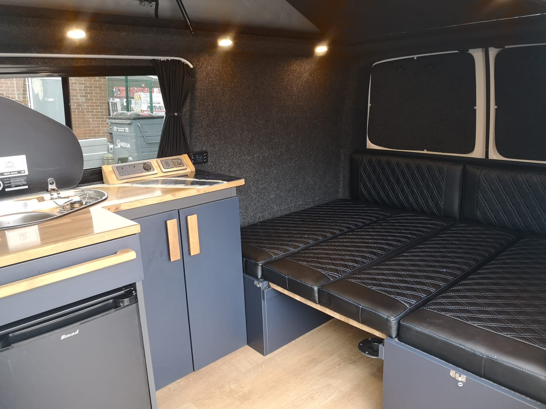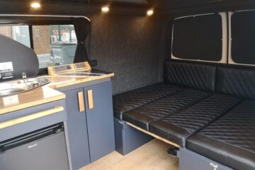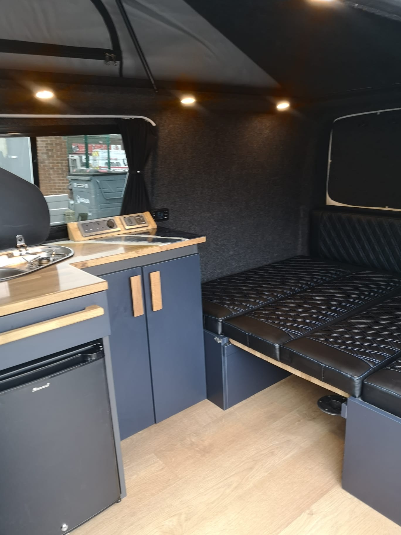 If so then this stunning 2014 plate, VW Highline in our Retro Two tone style with some stand out alloys and our custom made kitchen and cast resin worktop might just be one well worth you checking out. It has a brand new MOT until Feb 2014, a brand new full service, 99,000 miles and is one of Bearwood Campers owners personal campervan that’s got loads of awesome extras inside. Brand new clutch and flywheel, Air con, Electric heated mirrors, Full Bluetooth stereo and phone connectivity, Cruise control and much more.