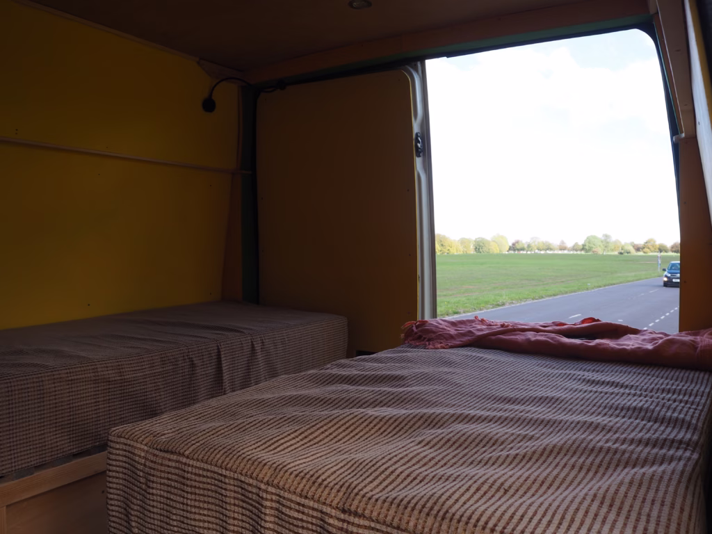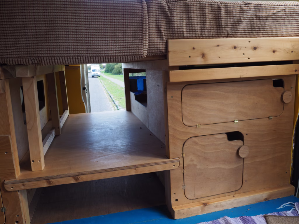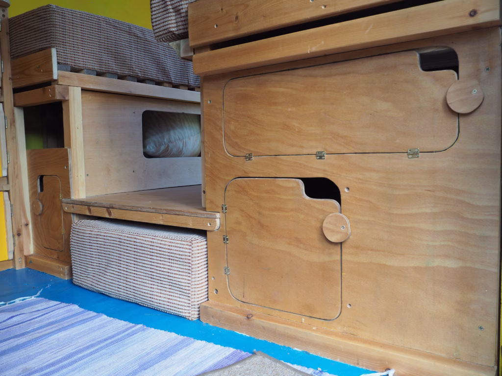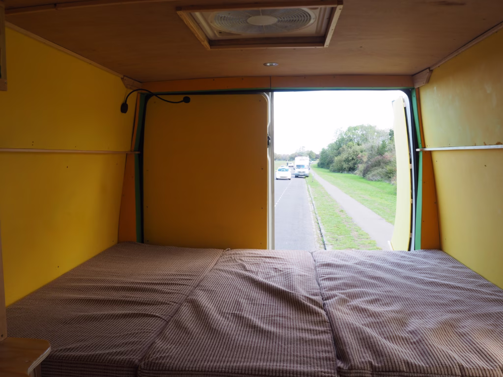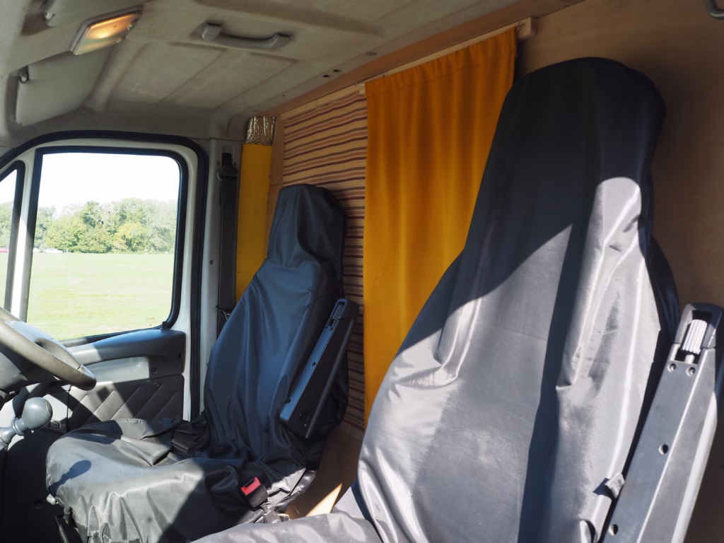 The original double passenger seat in the cab has been replaced by a single seat, to allow movement between the cab and living area without having to leave the van when it’s raining outside.