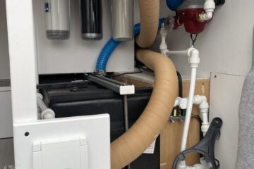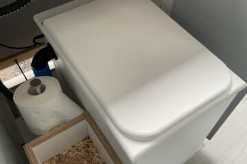 Strumpet and Trollop composting toilet with 12v extraction fan