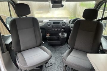 Live Slow Campers are selling this recently completely conversion on behalf of a part build customer. This is a Vauxhall Movano MWB with a conversion based on a 2 berth layout, consisting of a double fixed bed, full kitchen, pull out toilet and swivel captain seats.