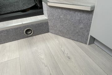 Snow Leopard is ridiculously well insulated, with up to 100mm of Kingspan insulation in places. All internal metal areas have been carefully covered with light grey autocarpet, reducing condensation and increasing insulation.
