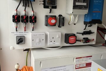 Snow Leopard is also designed to operate completely off-grid for extended periods. If you want to stay at a camp site, the leisure batteries can be charged by the mains hook-up (via the Victron charge controller). However, you’ll probably never need it! The batteries are also charged by the 325W solar panel when the sun’s out. And even if it’s cloudy and miserable it doesn’t matter, because the batteries are also charged by the engine via the split charge relay. So as long as there’s diesel in the tank you won’t run out of electricity.
