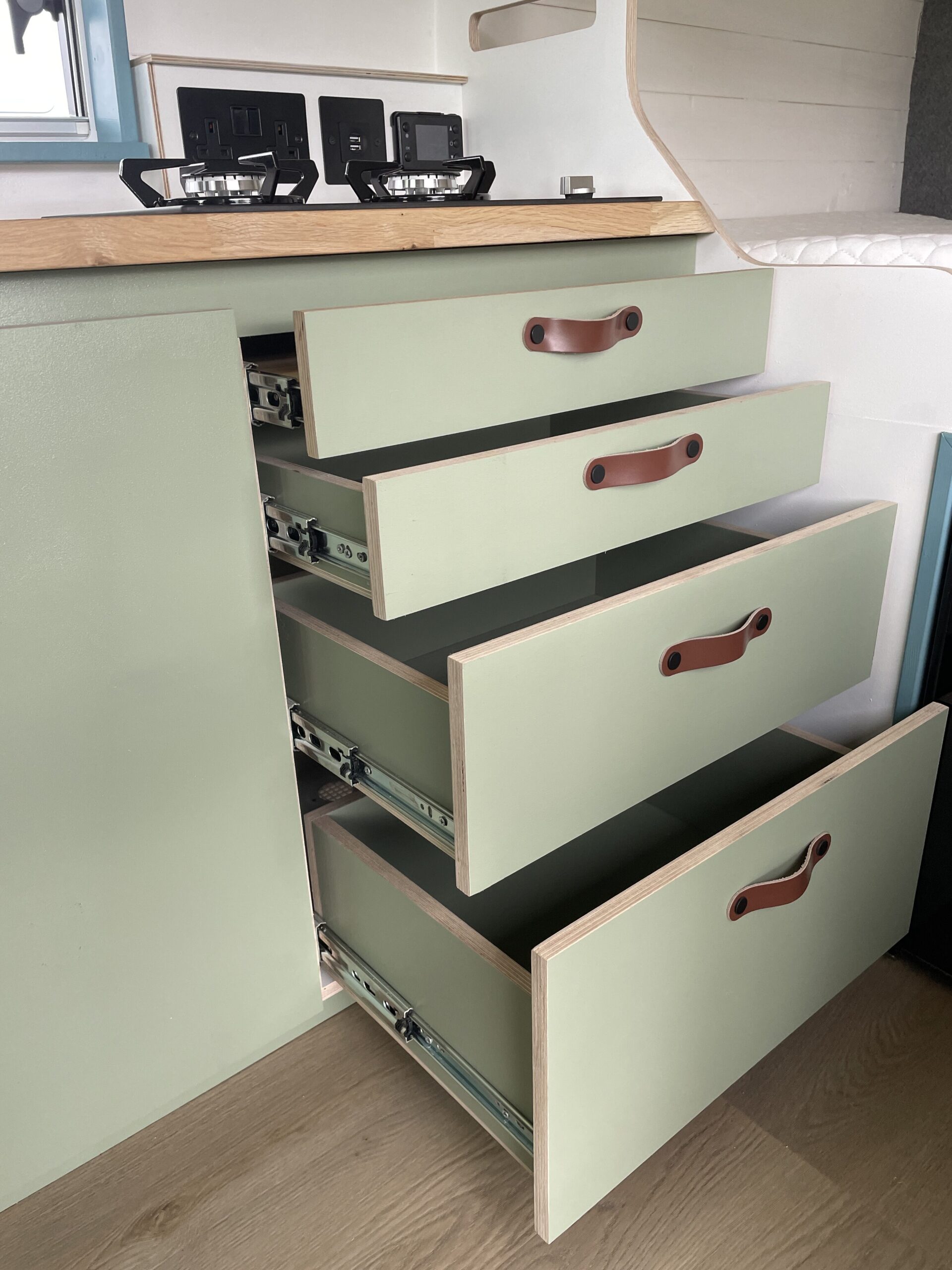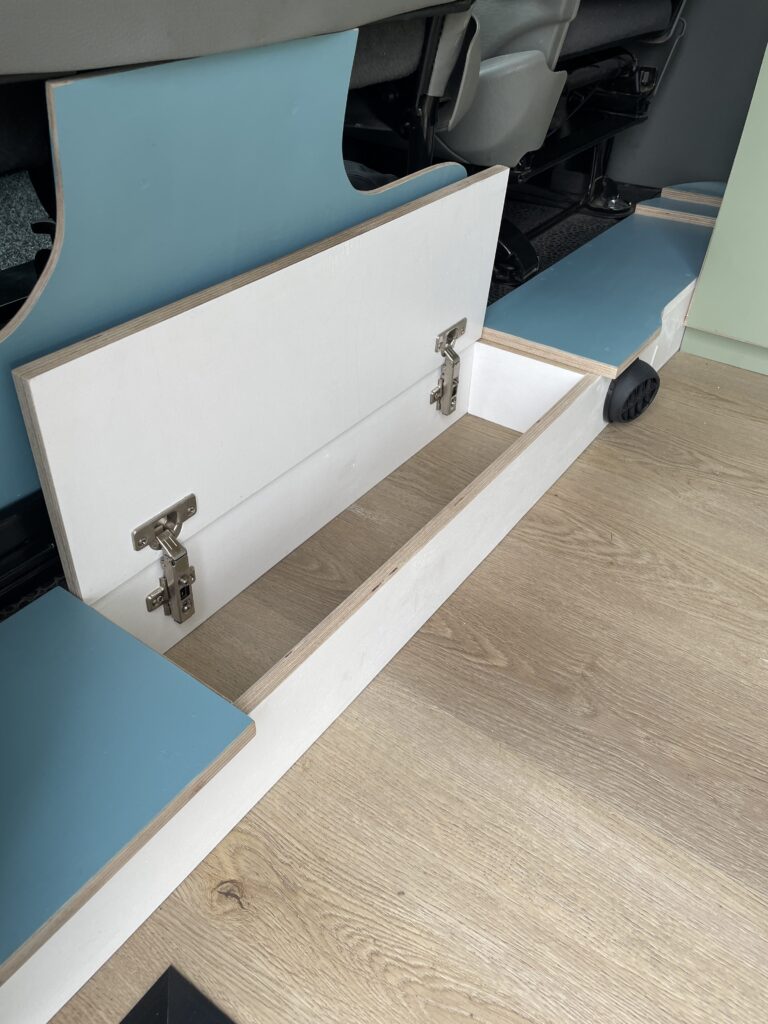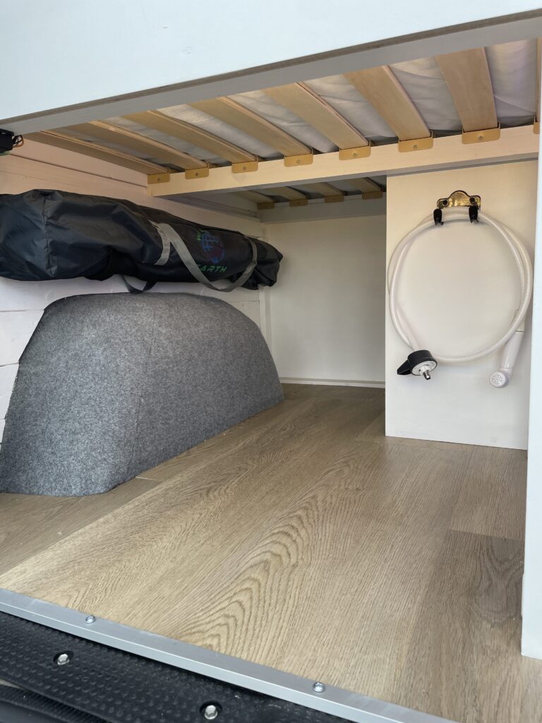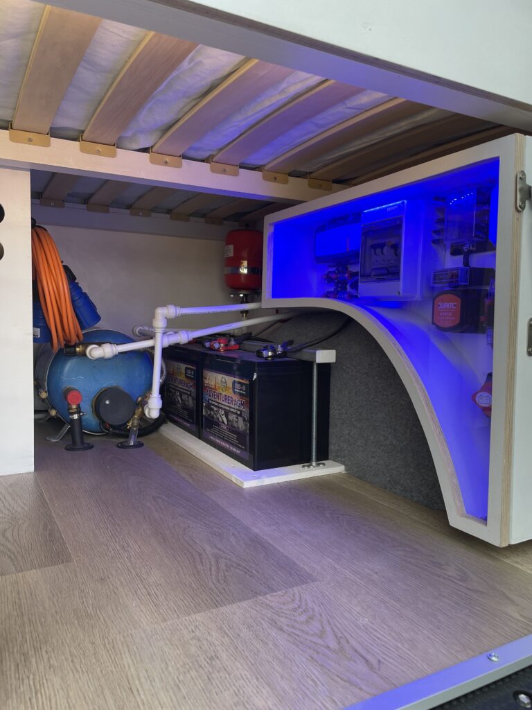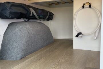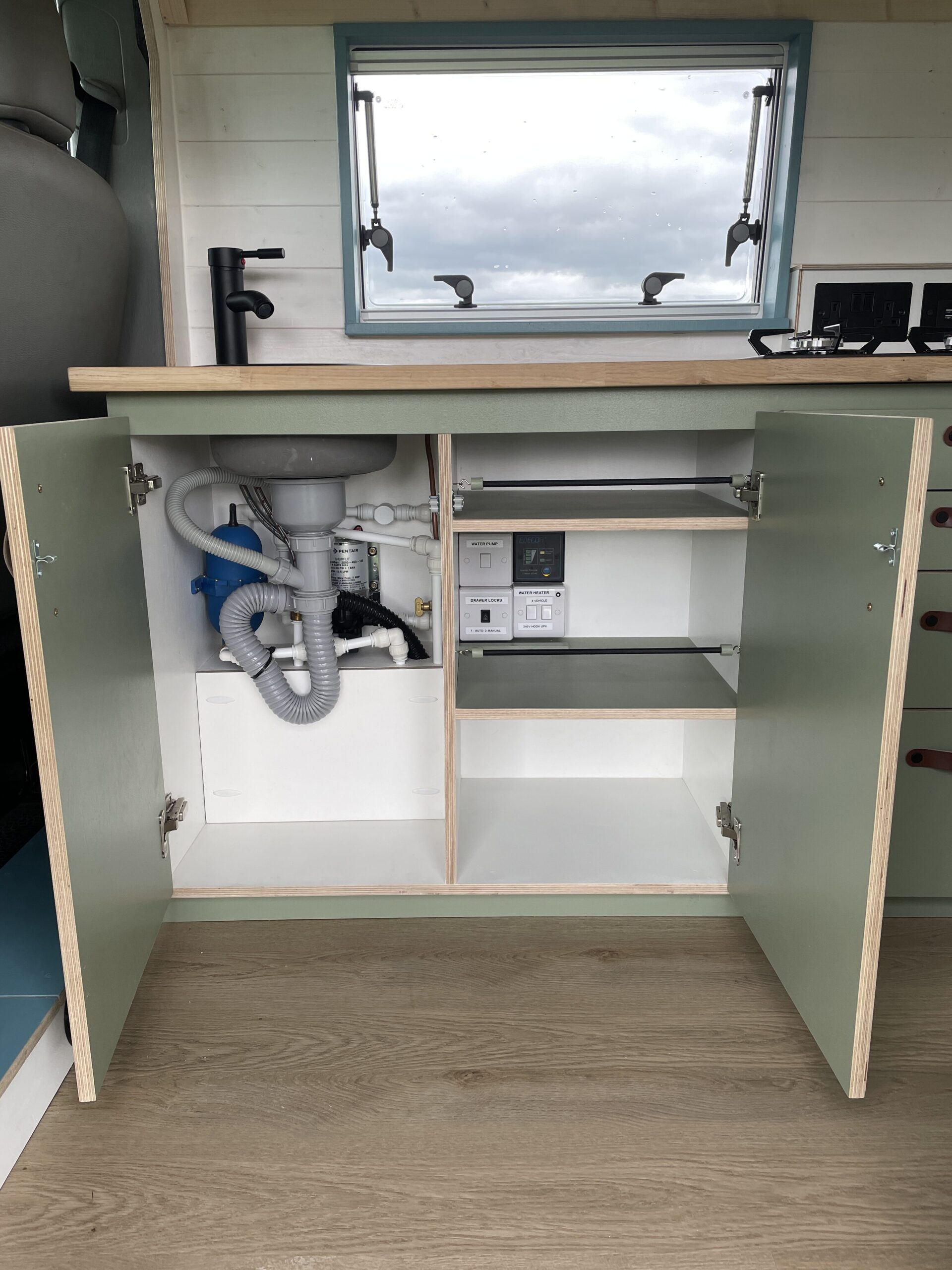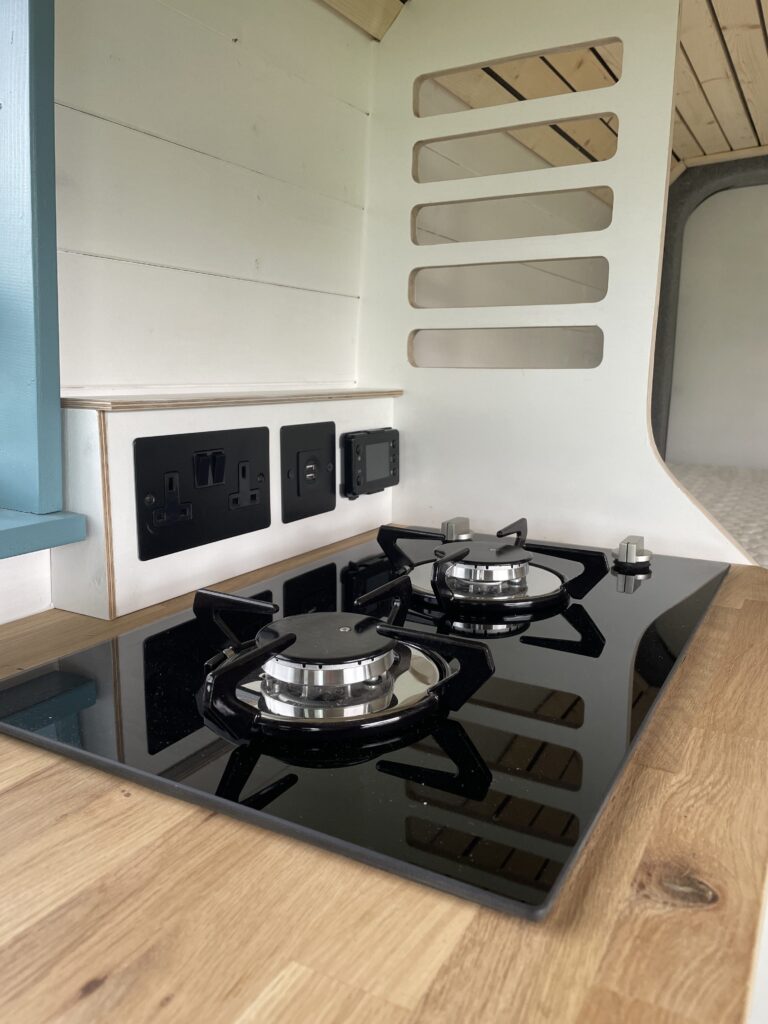 A hidden feature of this van and a bonus in a smaller conversion is the calorifier system – meaning you can heat up 6L of hot water while you drive. No boiling the kettle to wash up and a hot outdoor shower for rinsing off at the beach.