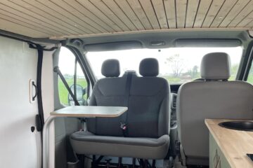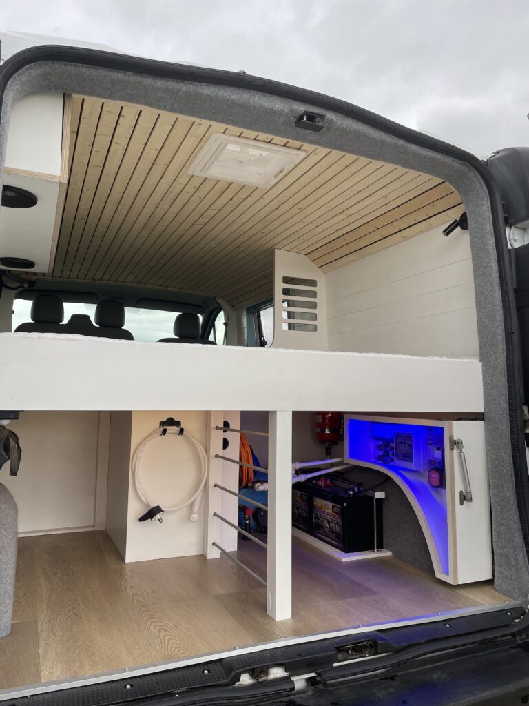 The van is kitted out with an android sat nav and media system and the 1.9 diesel engine is a joy to drive. Meaning you can cruise on the motorways or tackle smaller country roads with ease. When you arrive at your overnight stay the high spec systems and gear will keep you going off grid. Whilst also giving you the option to hook up at a campsite with the 240V system and a bonus of charging up your leisure batteries at the same time.