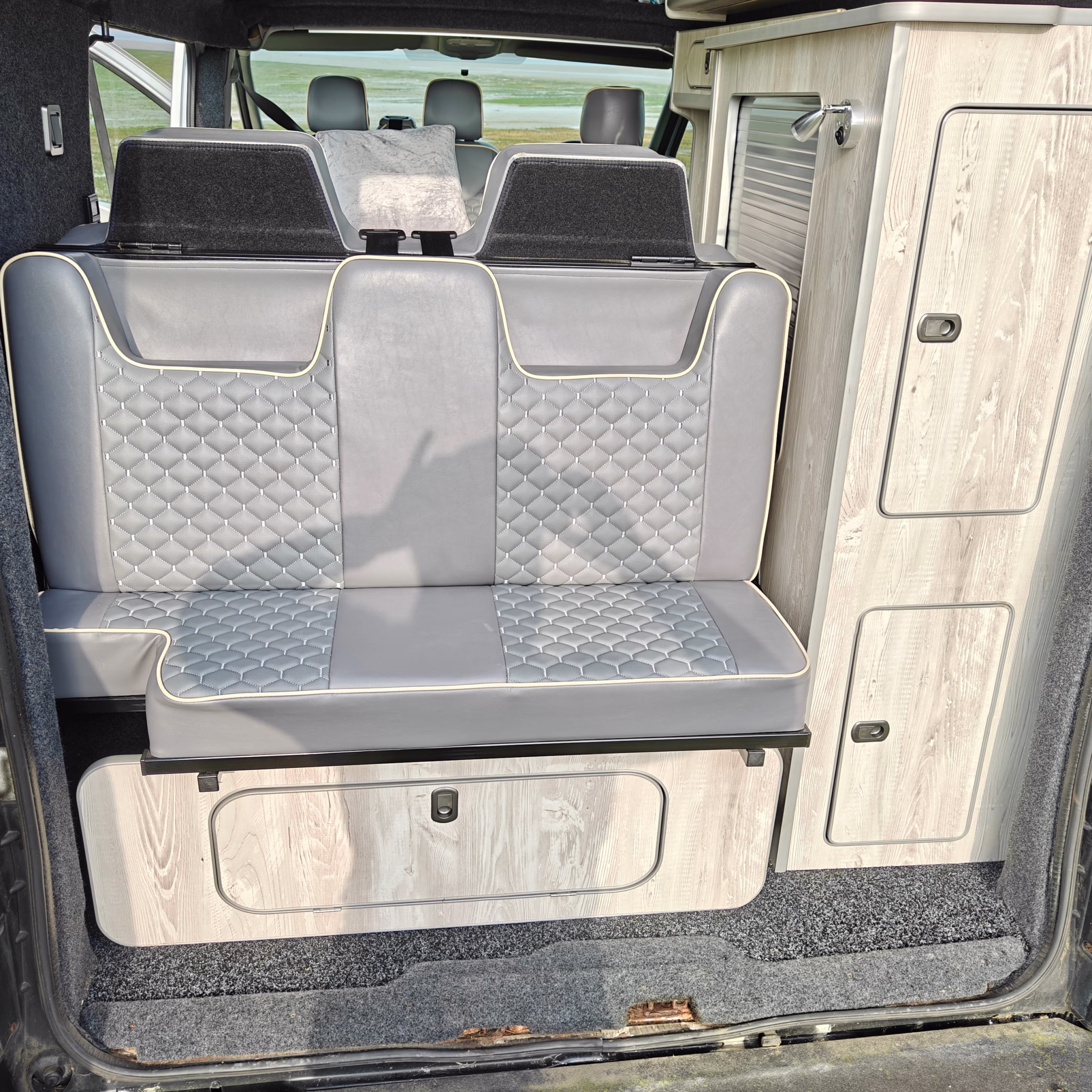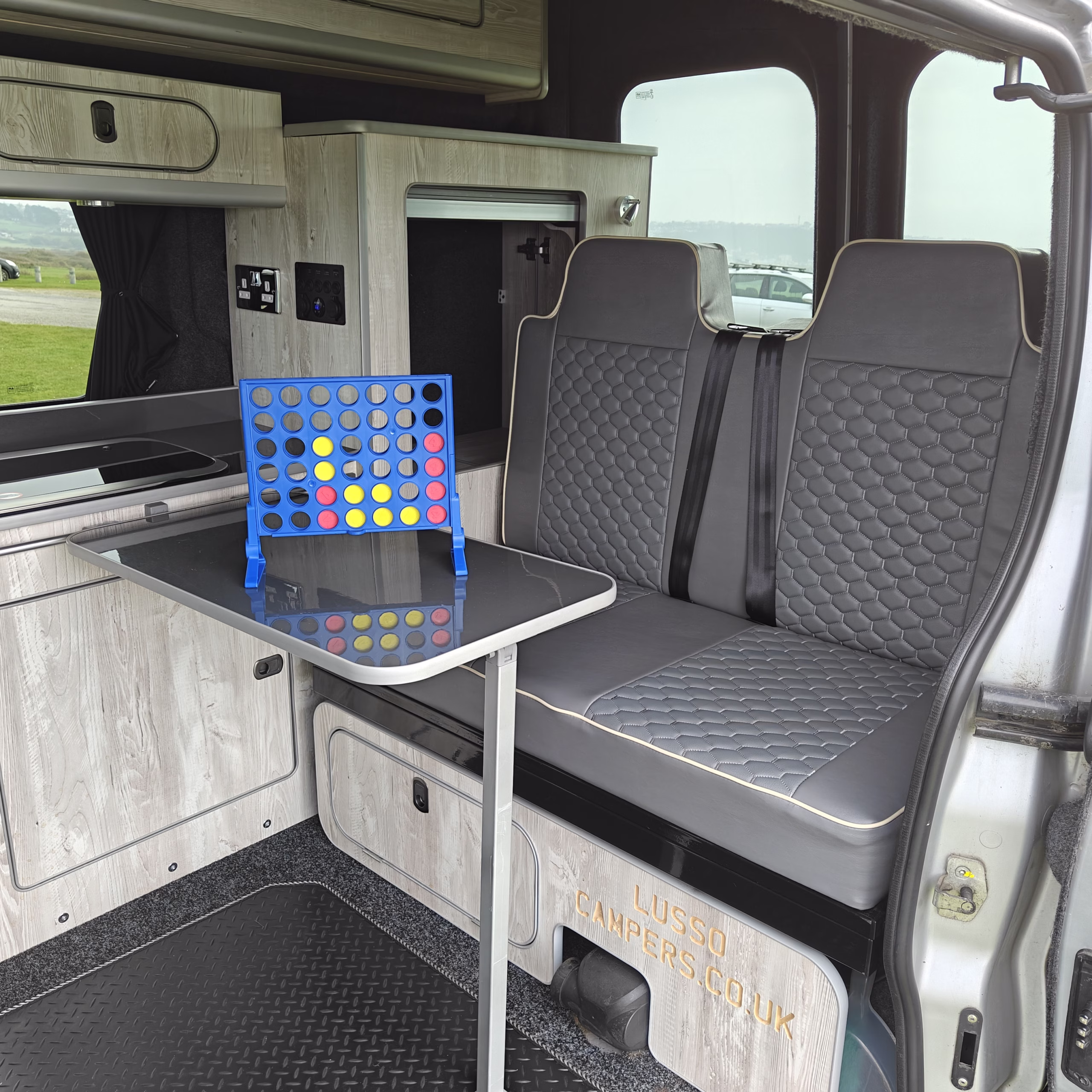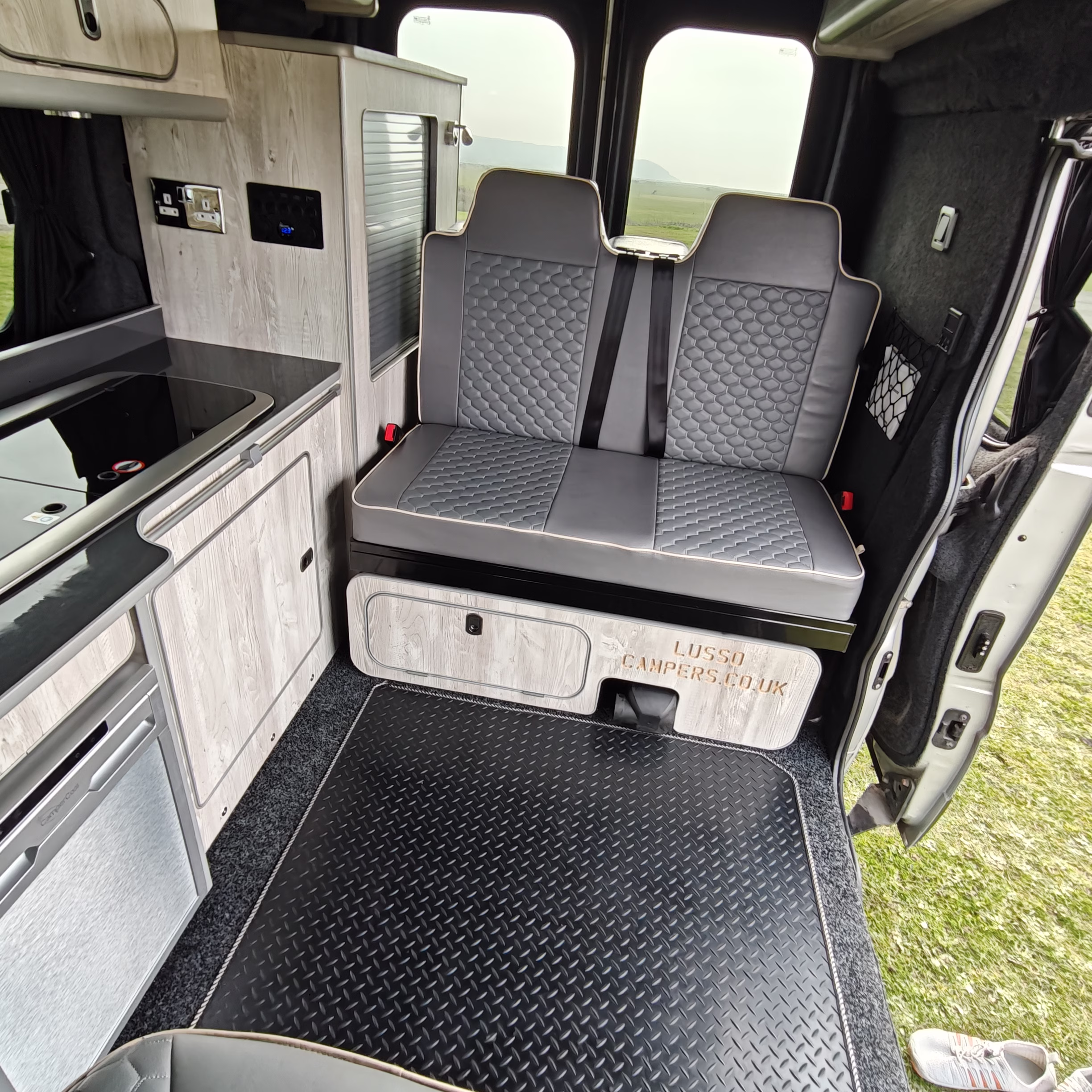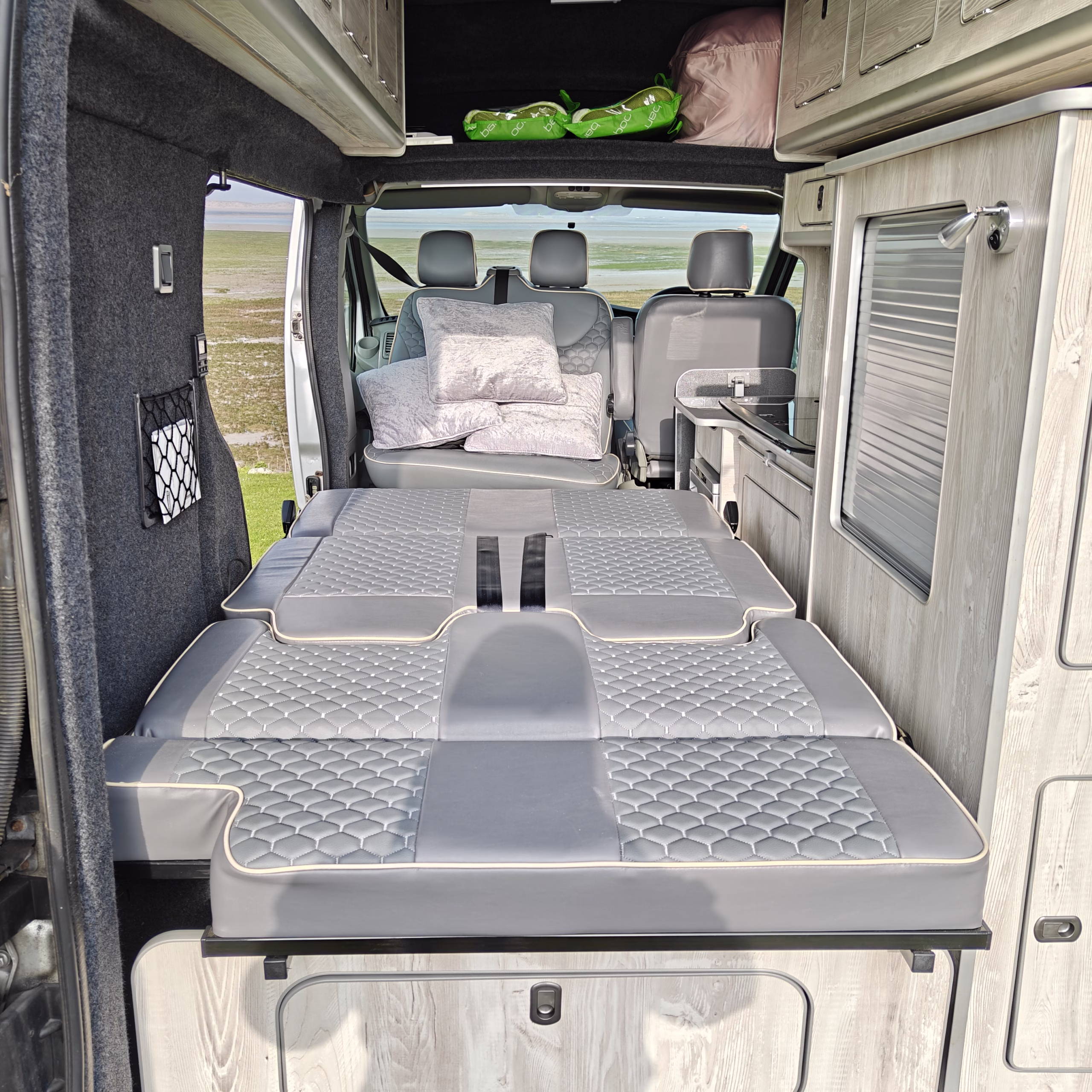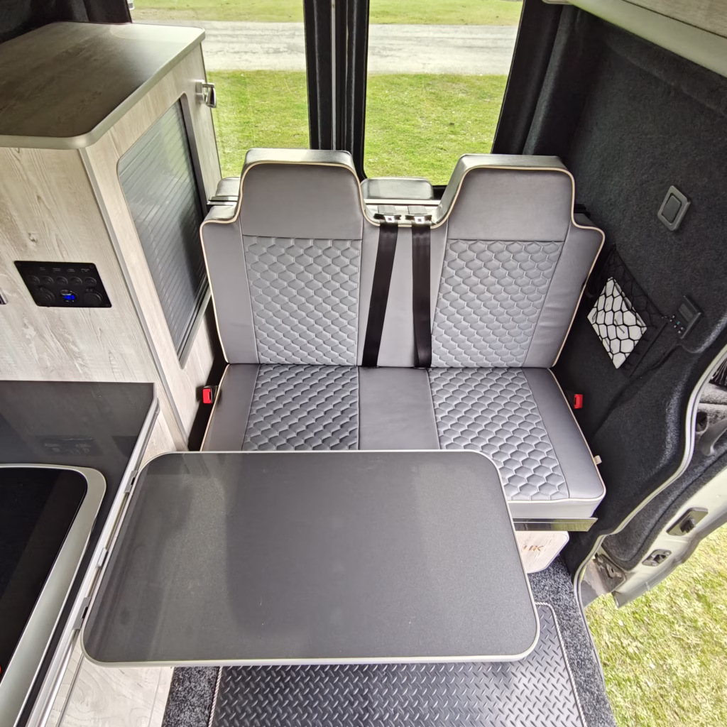 * Safe and versatile Rock & Roll bed with two integrated seatbelts, perfect for comfortably accommodating passengers and converting quickly for sleep.