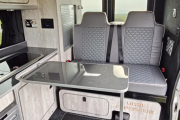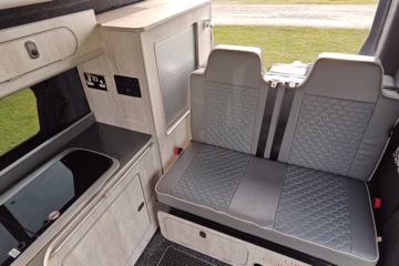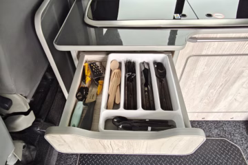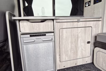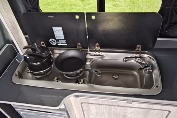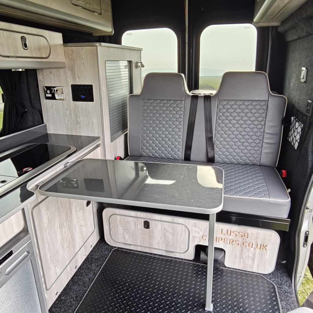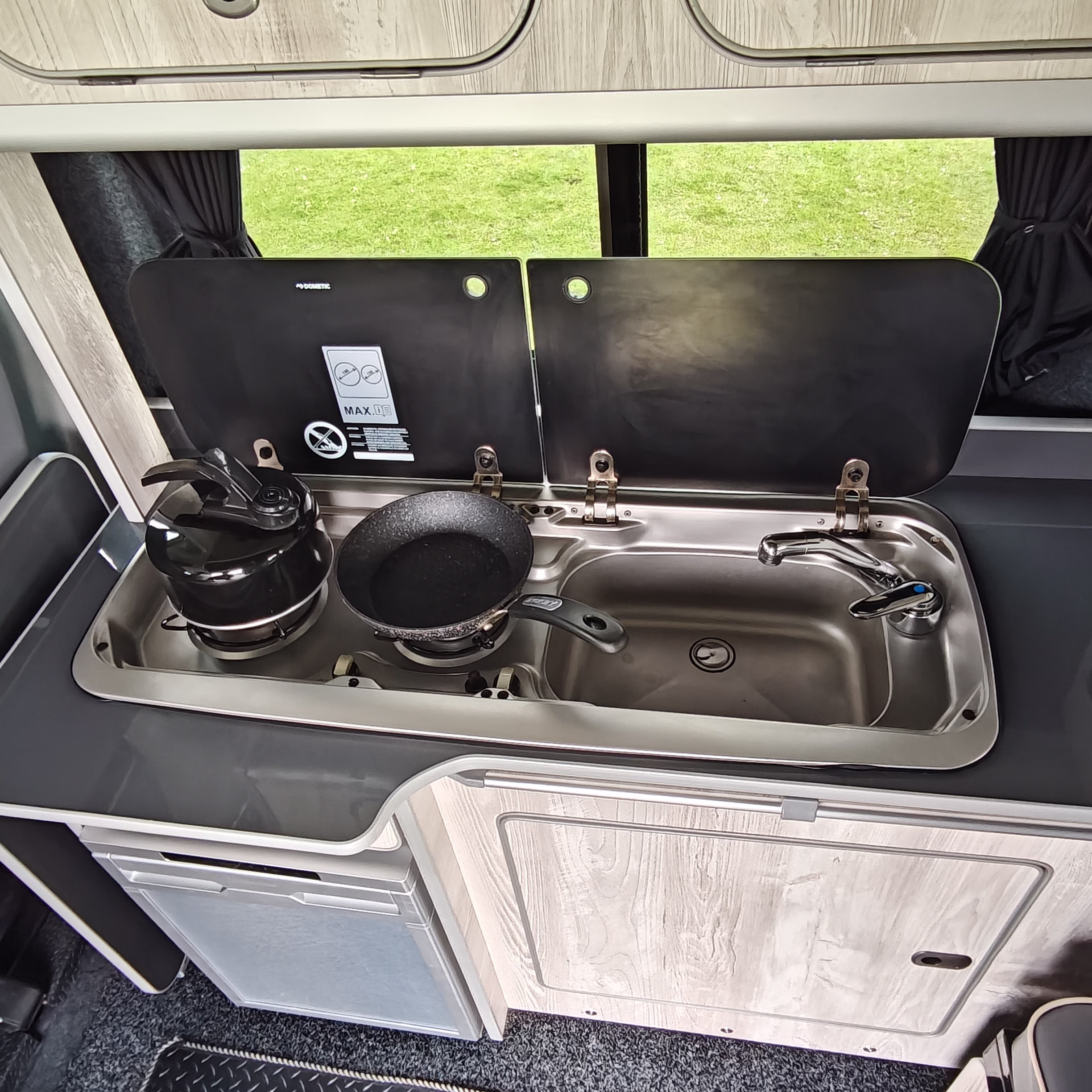* Premium Dometic appliances, including a sink, hob, providing essential home comforts on the road.