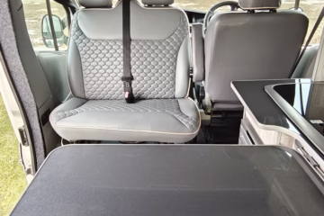 * Flexible Seating: 5 belted seats. The front cabin maximizes comfort and space with a driver’s Captain’s seat and a versatile Twin Passenger Swivel seat, complemented by 2 belted seats in the rear via the Rock & Roll bed.