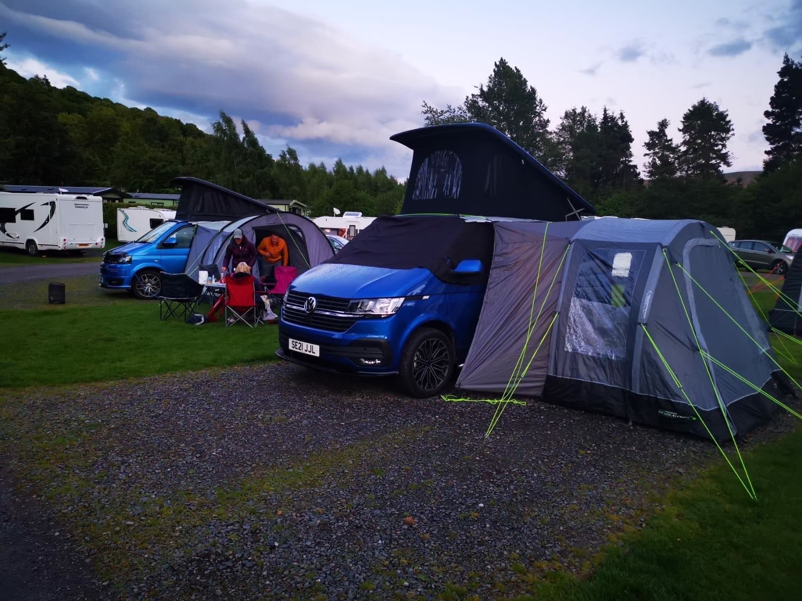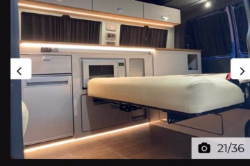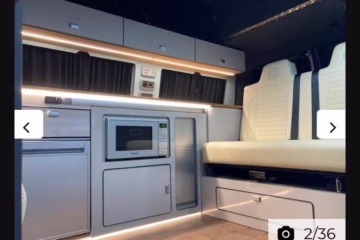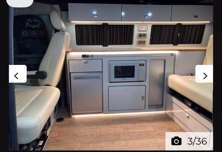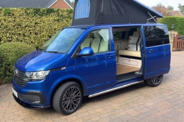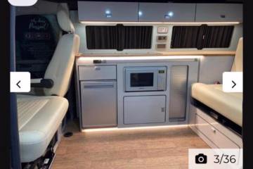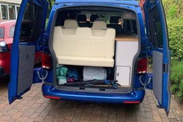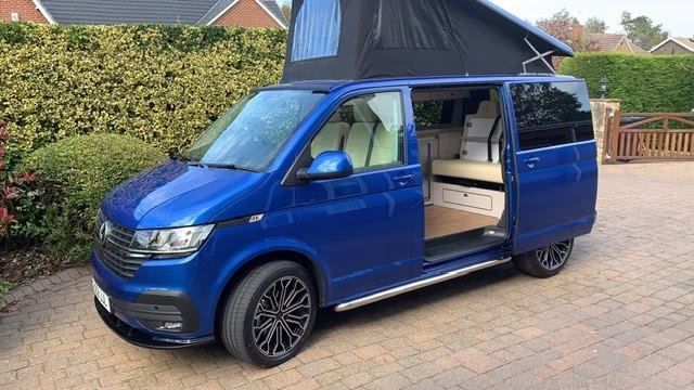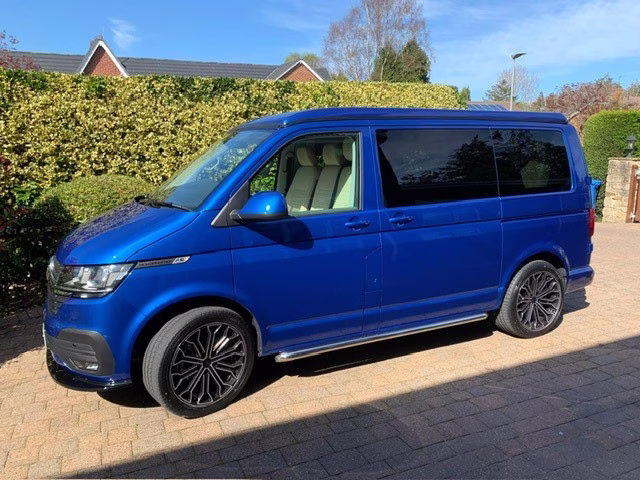 Luxury Lindsfarne Campervan, stunning 21 plate VW T6.1 fully equipped with luxury Lindsfarne conversion with diesel heater, sky line top roof, bifold roof bed giving extra headroom front and rear. Panasonic microwave, 50l fridge freezer, domestic hob and sink combination, wireless charger, LED lighting pack, M1 tested recliner bed system, overhead lockers, rear lockers and stylish flooring.