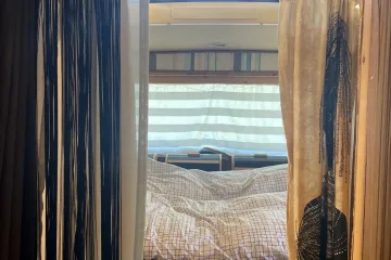 * Private Master Bedroom: At the rear, you’ll find a raised double bed space with windows on the rear and one side, offering stunning views from the height of the bed. The opposite side features built-in cupboards and shelves for storage. It’s a cozy nook for restful nights, perfect for soaking in those ocean or mountain views.