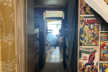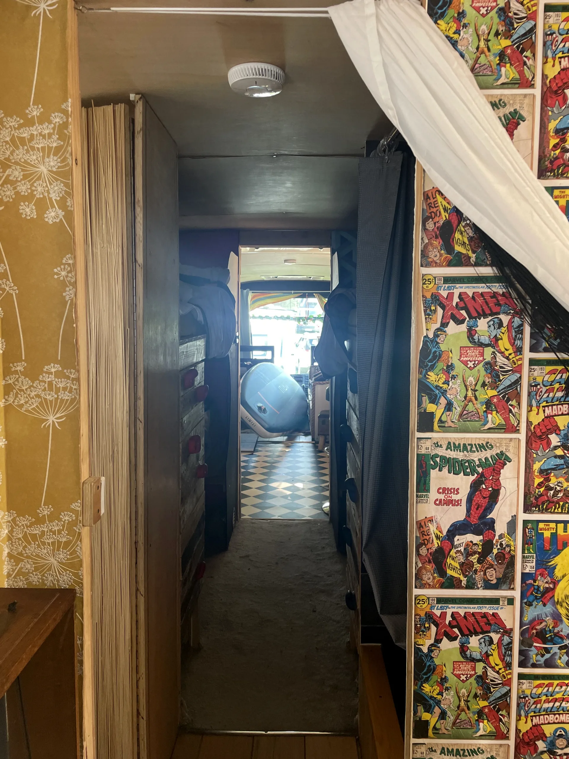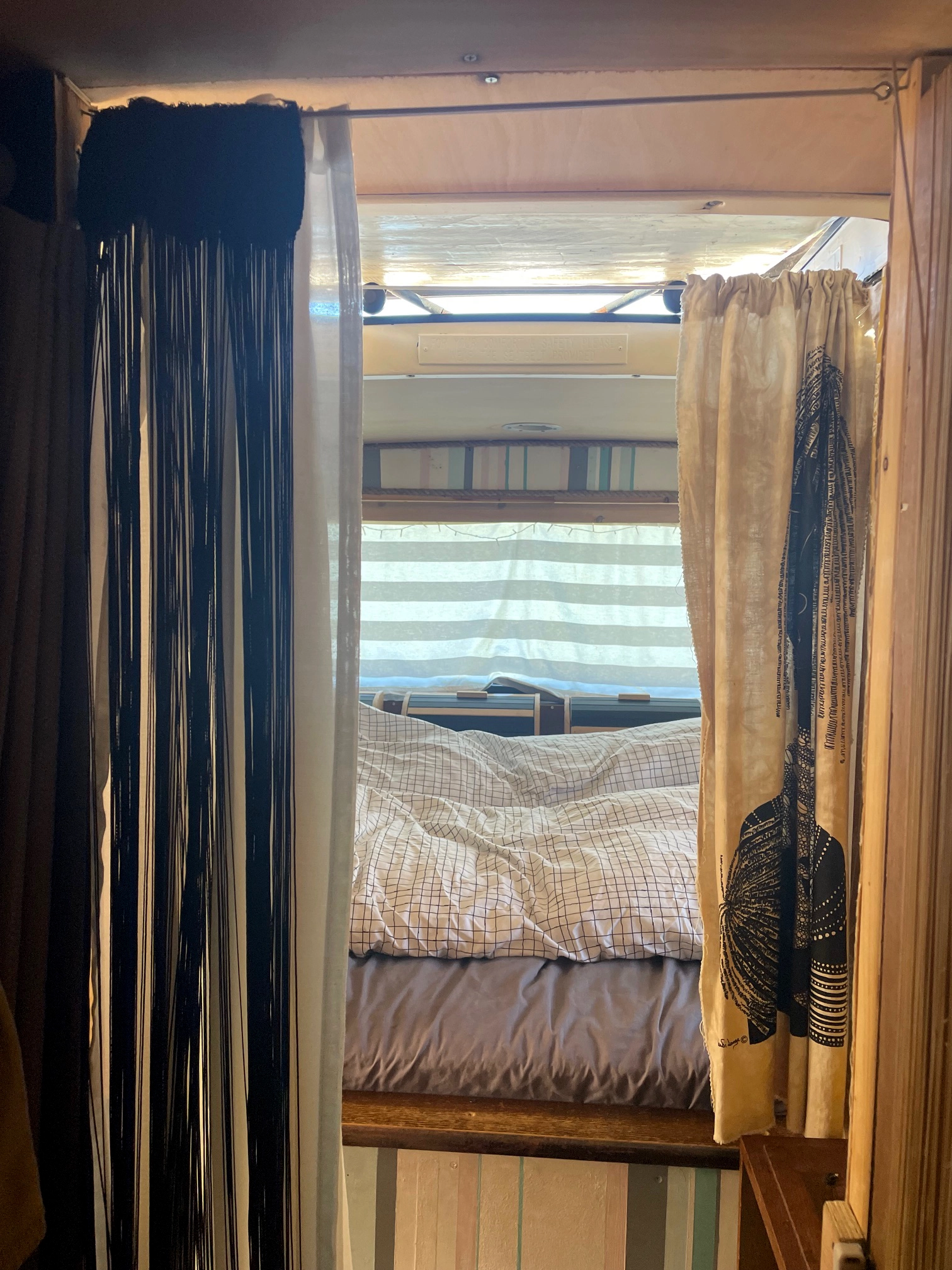 * Kids’ Paradise: Sliding barn doors lead into the kids’ area in the middle of the bus. This space is designed for fun and function, featuring two bunk beds, each with its own play area, desk, and small wardrobe – perfect for keeping little ones entertained and organised.