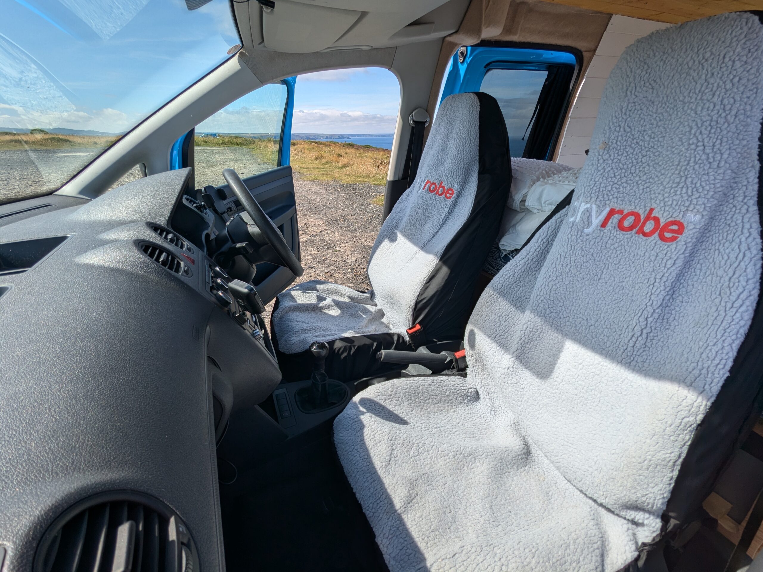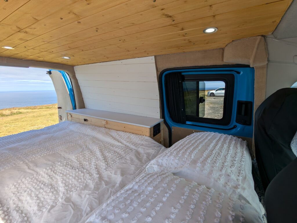 Van will also come with thermal reflective sucking window covers for the front cab to create privacy and black-out darkness when sleeping.