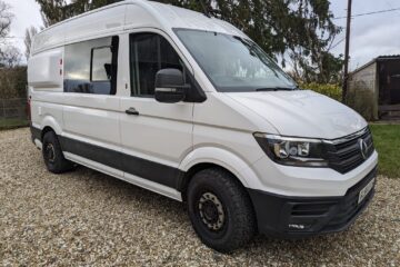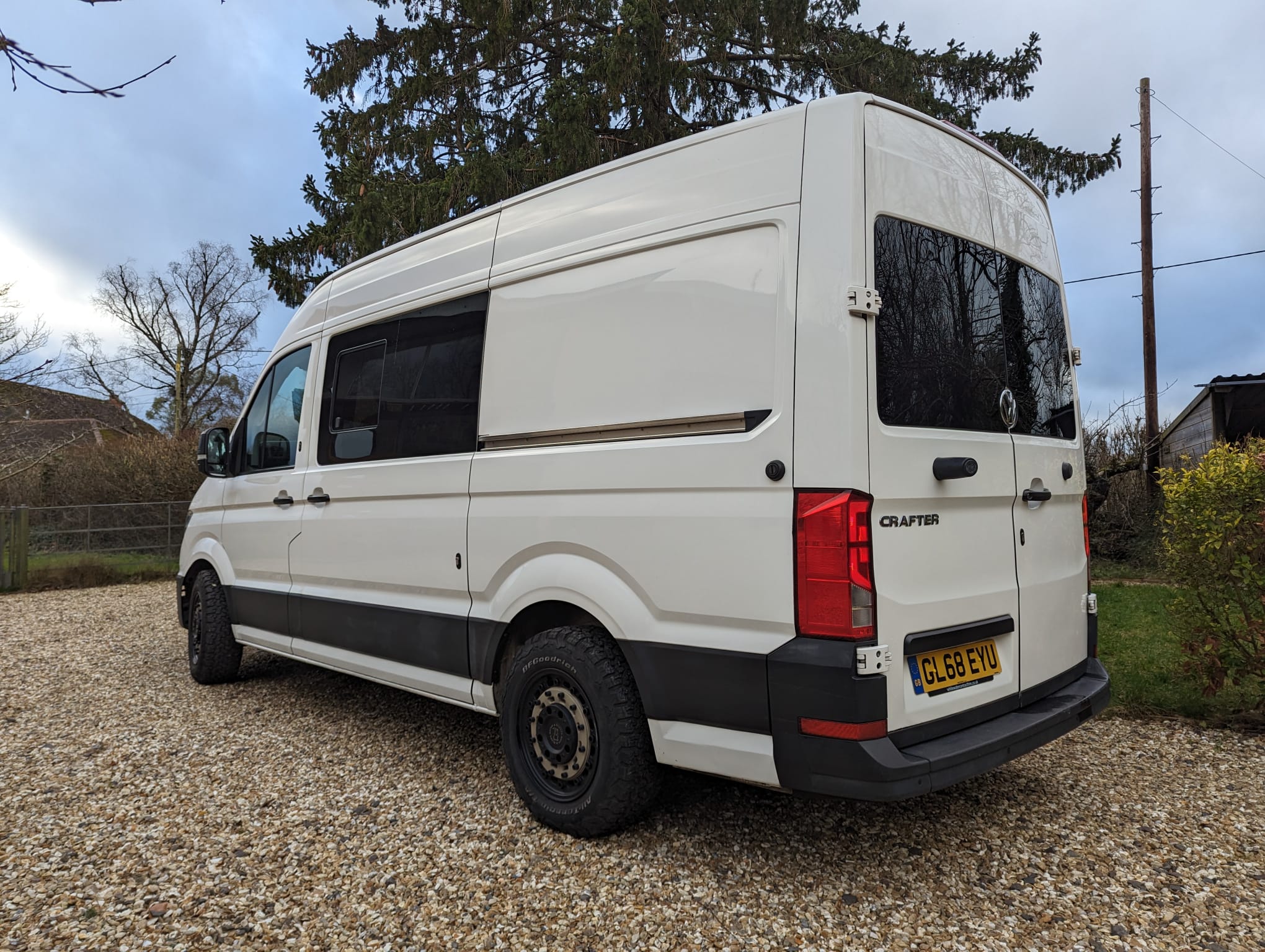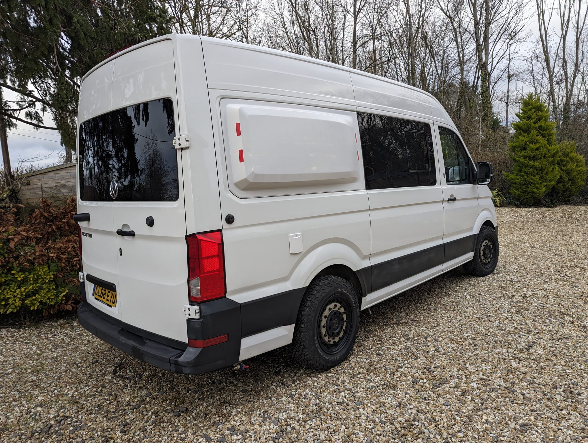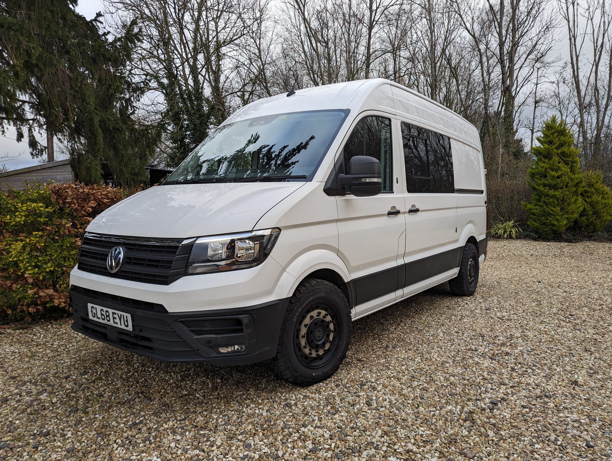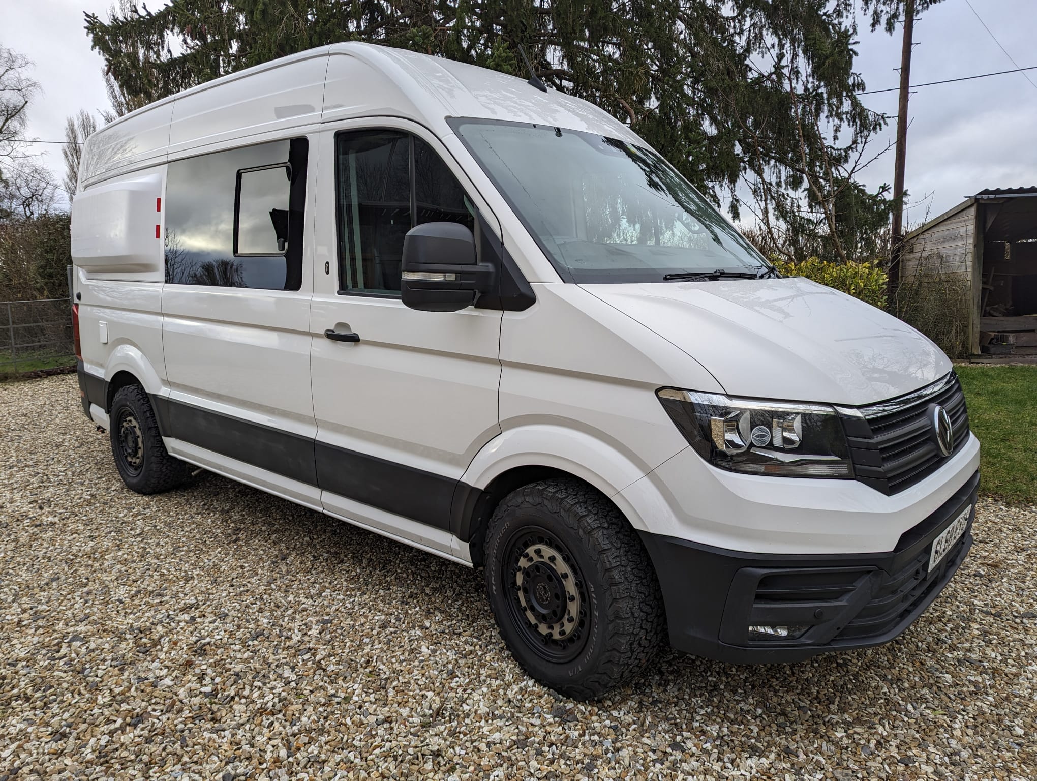 Based in Bristol this is a VW Crafter 2019, 2 litre Highline features Adaptive Cruise Control (which is amazing on long drives) and a screen that can link to your phone for google maps, Spotify, etc and is ULEZ compliant. It has done just over 100k miles and it’s last service and MOT was this Feb this year (with no issues). The drivers seat has double arm rests and for extra security the doors have been fitted with deadlocks. A further upgrade are the BFGoodrich All-Terrain tires.
