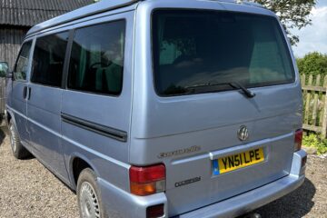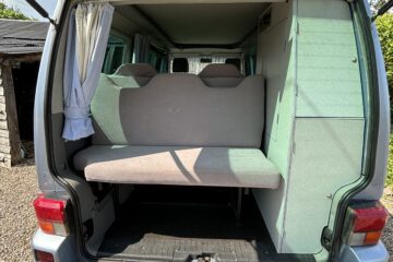 This Caravelle was originally fitted out for a disabled user hence the automatic transmission and low mileage plus I have had it in dry storage for several years. The air con is a joy, I guess it is aftermarket and works well. NO fridge ! I use a coolbox but the fridge space is there. Poptop roof and bed by CC Campers of Kidderminster. 2 burner hob, sink and fresh/waste water tanks. Included is a 5th seat which is not fitted but could be, it has a quick release catch and the full seat belt is still in place. Overall condition is very good except rear bumper paint, I bashed into the gate post and there has been some paint bubbling on rear n/s by the wheel but the metal is still solid. MOT due 21/04/25