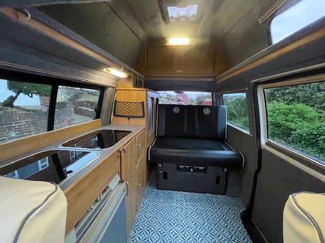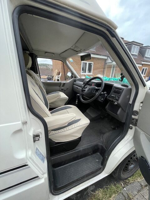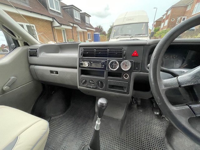 The fabulous thing about this camper is that she had a reconditioned engine put in last year! The work was carried out by VW specialists, Sussex Aircooled, Etchingham (all paperwork present). The engine change also included a reconditioned head and turbo. Starts first time even when she hasn’t been driven for several weeks, and she is such an easy drive! And, even though the odometer read 166729 miles at the engine change, the replacement engine will, of course, be much more like a new engine (eg better reliability, less money on repairs etc).