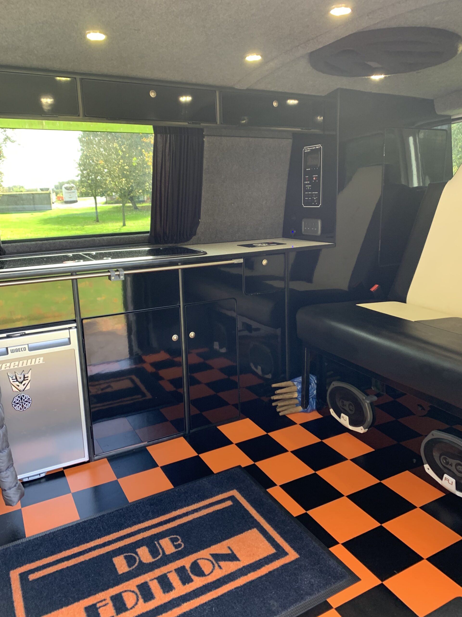 Insulation, carpet walls and ceiling, electrical, gas cooker, sink, Waco fridge, storage cupboards, floor and internal lighting