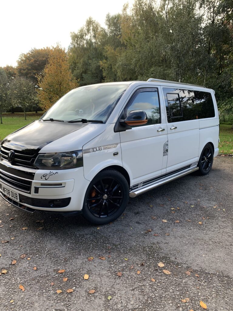 Beautiful well looked after campervan in candy white, long MOT Aug 2023, recently serviced. Lots of history, lowered 50mm, 19” Range Rover alloys. Pendle re-map 160bhp, great miles to the gallon, professional conversion by Moores Campers in Bristol. Rock & Roll bed, cooker, sink, fridge, electric hookup and storage. Captain seats with passenger swivel base, loads of extras.