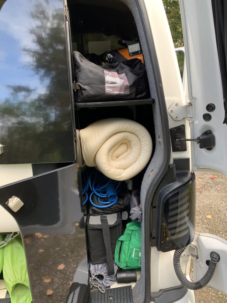 Rock & Roll bed, sleep’s two, you can add a bunk across the front seats for a child
