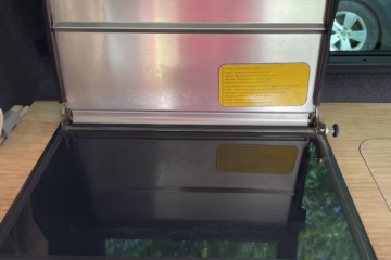 – Custom fold-out double bed inside (note: this is not a rock & roller seat bed, so the rear is set up for living/sleeping, not extra travel seats)