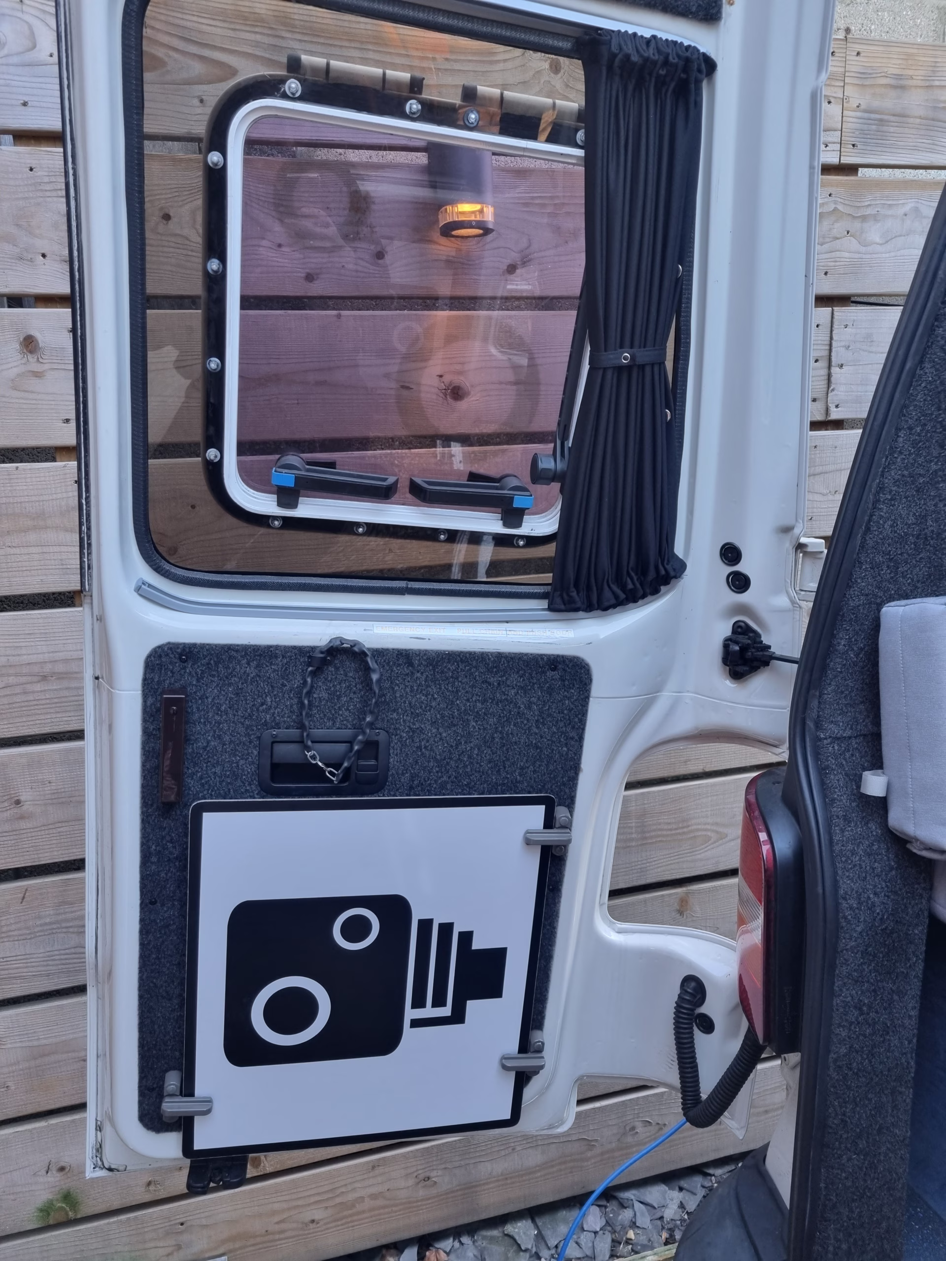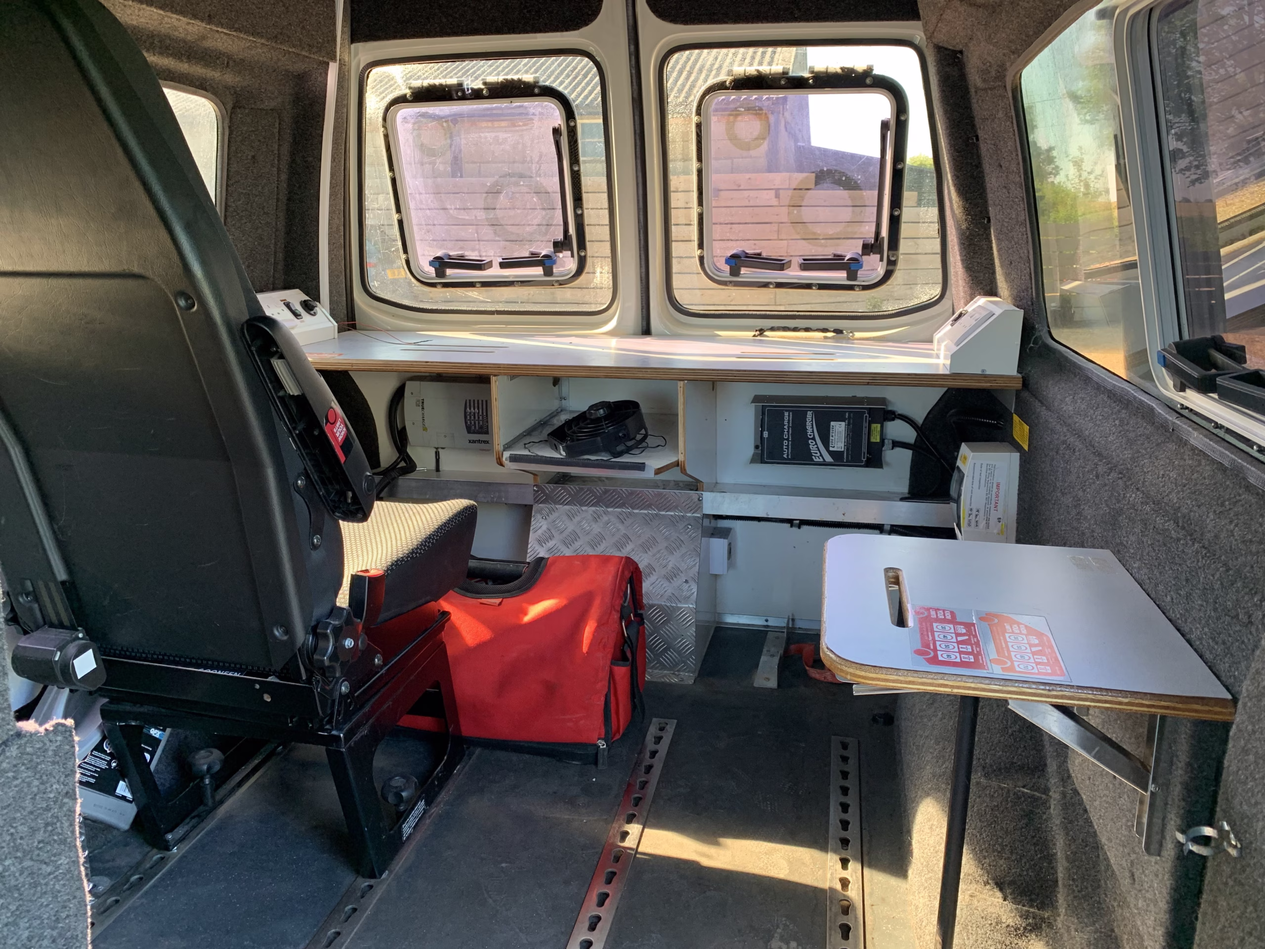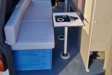 ⦁ 2x custom made aluminium speed camera signs table tops and legs which can be placed in 3 locations around the van to eat/workfrom.