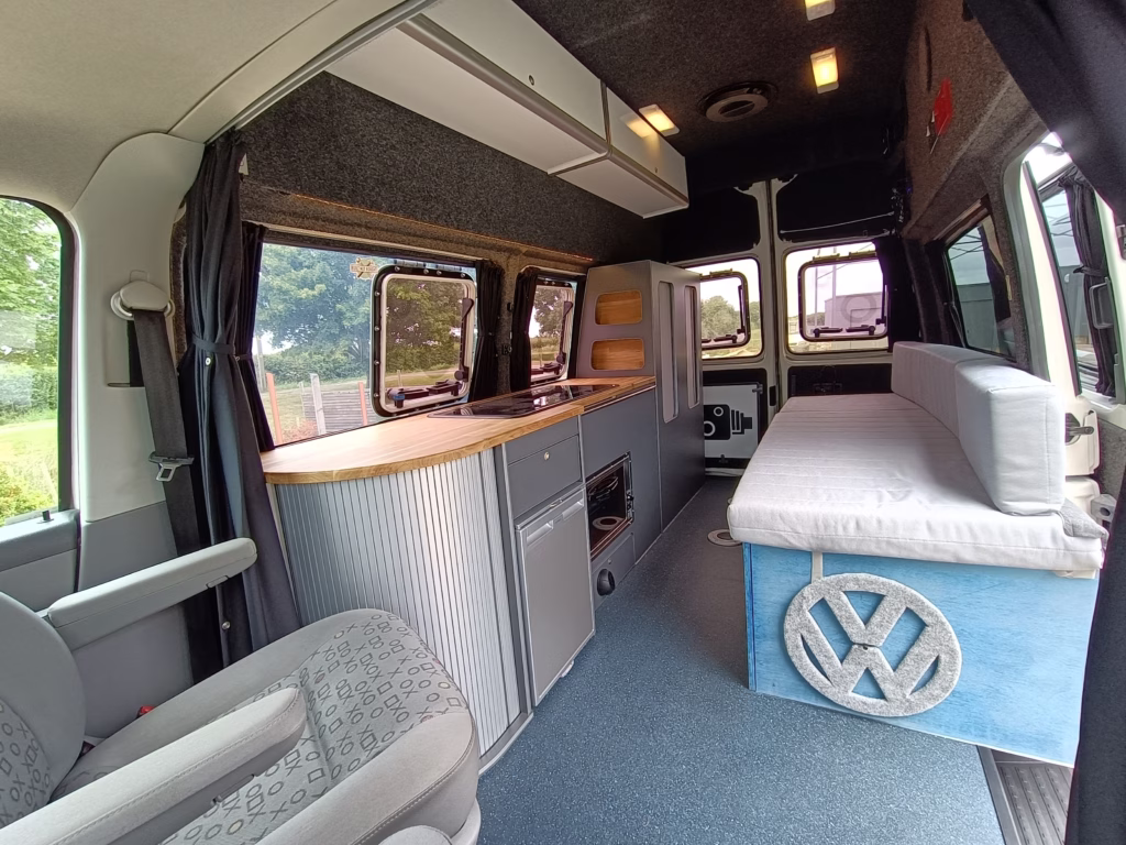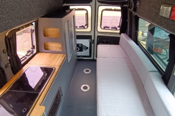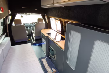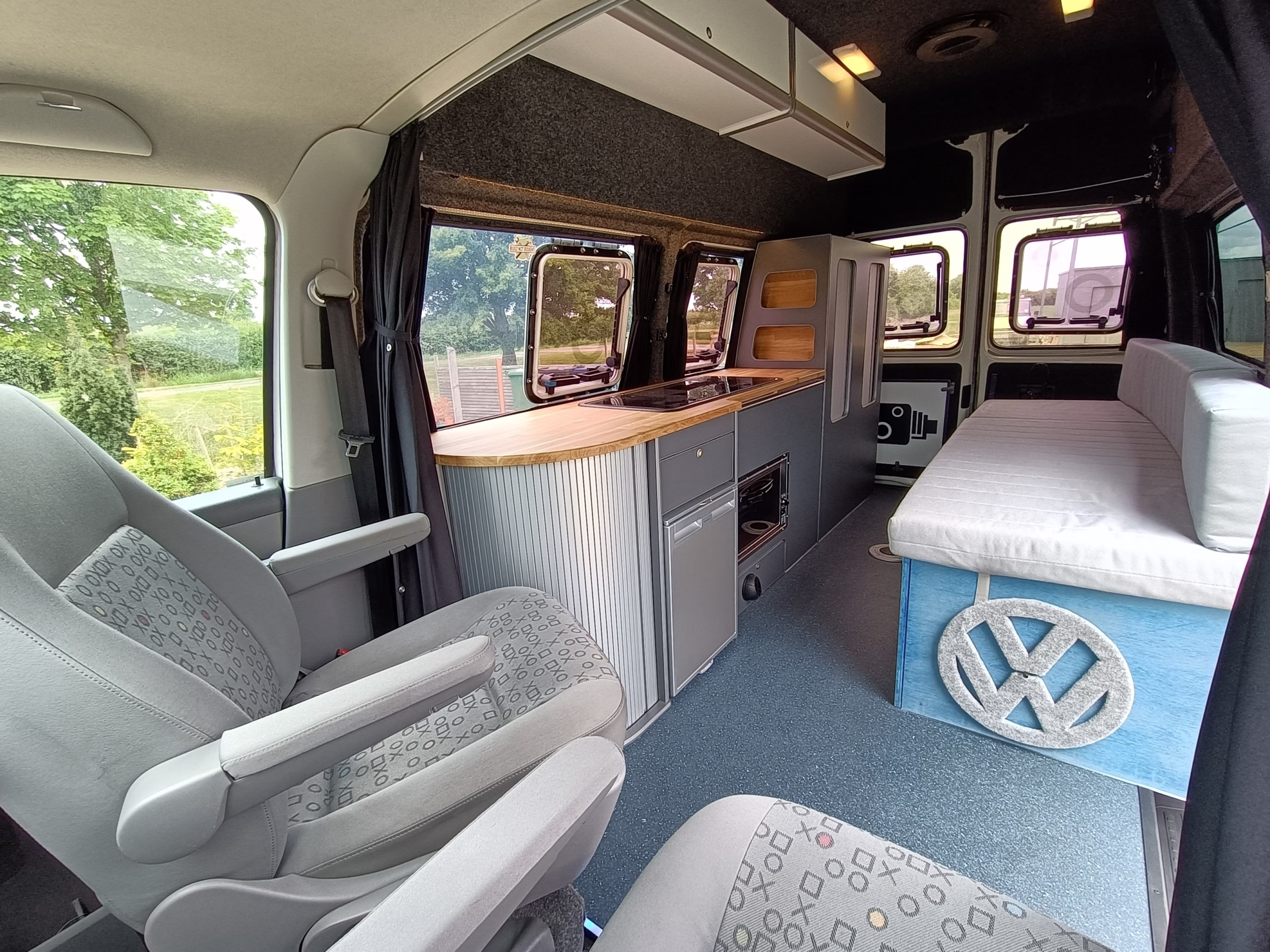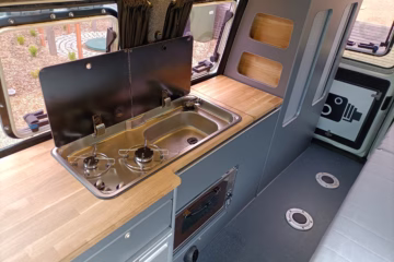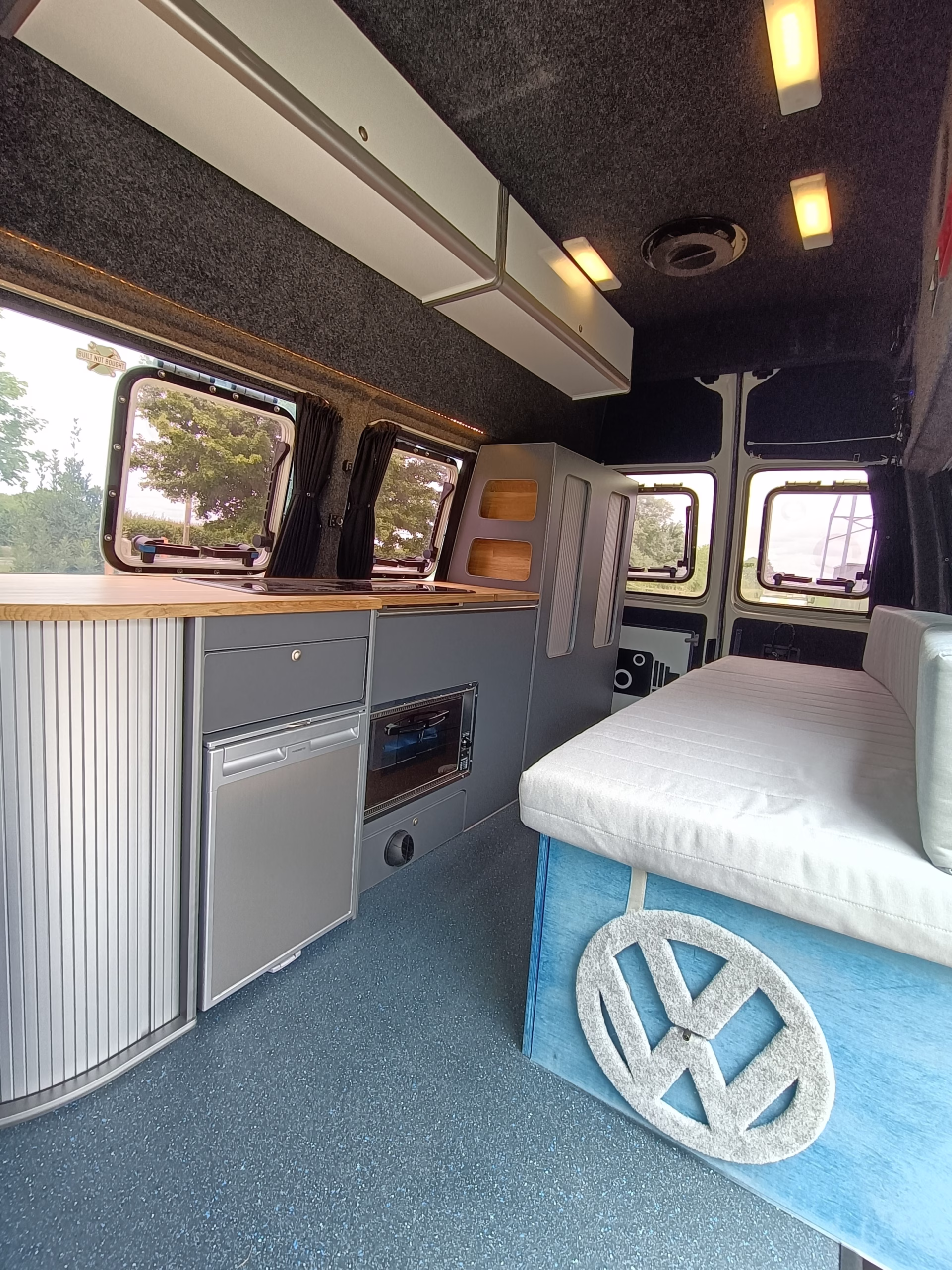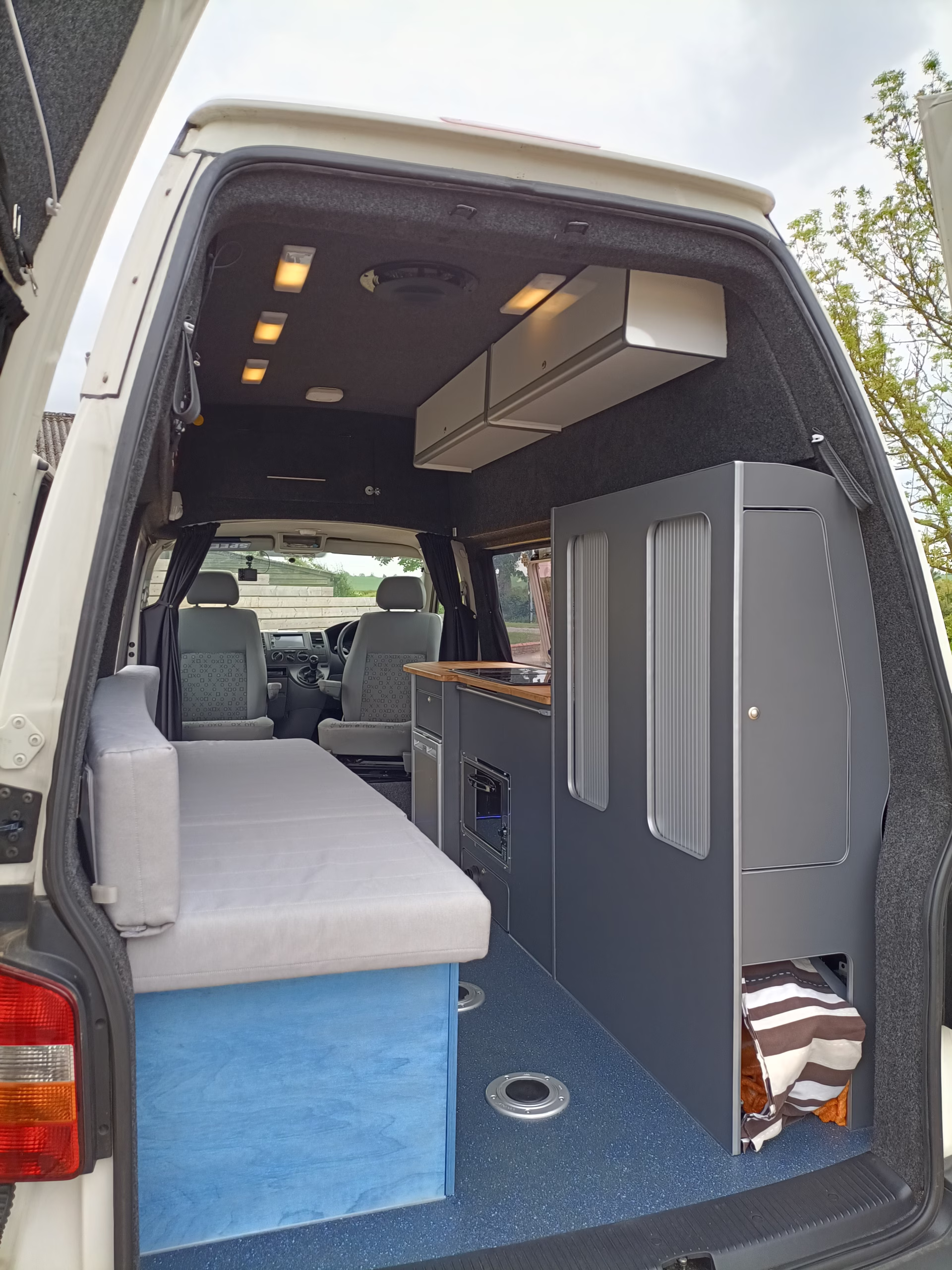 We converted the van during lockdown ourselves and have used it for various camping trips both on grid and off. We wanted a good reliable base to start with and not an ex commercial/builders van which might have had a hard life. You do not need to hookup to use this van, you can run for a week in the height of summer using solar only and still have icecreams frozen in the freezer compartment! All cooking is gas and therefore not reliant on solar
