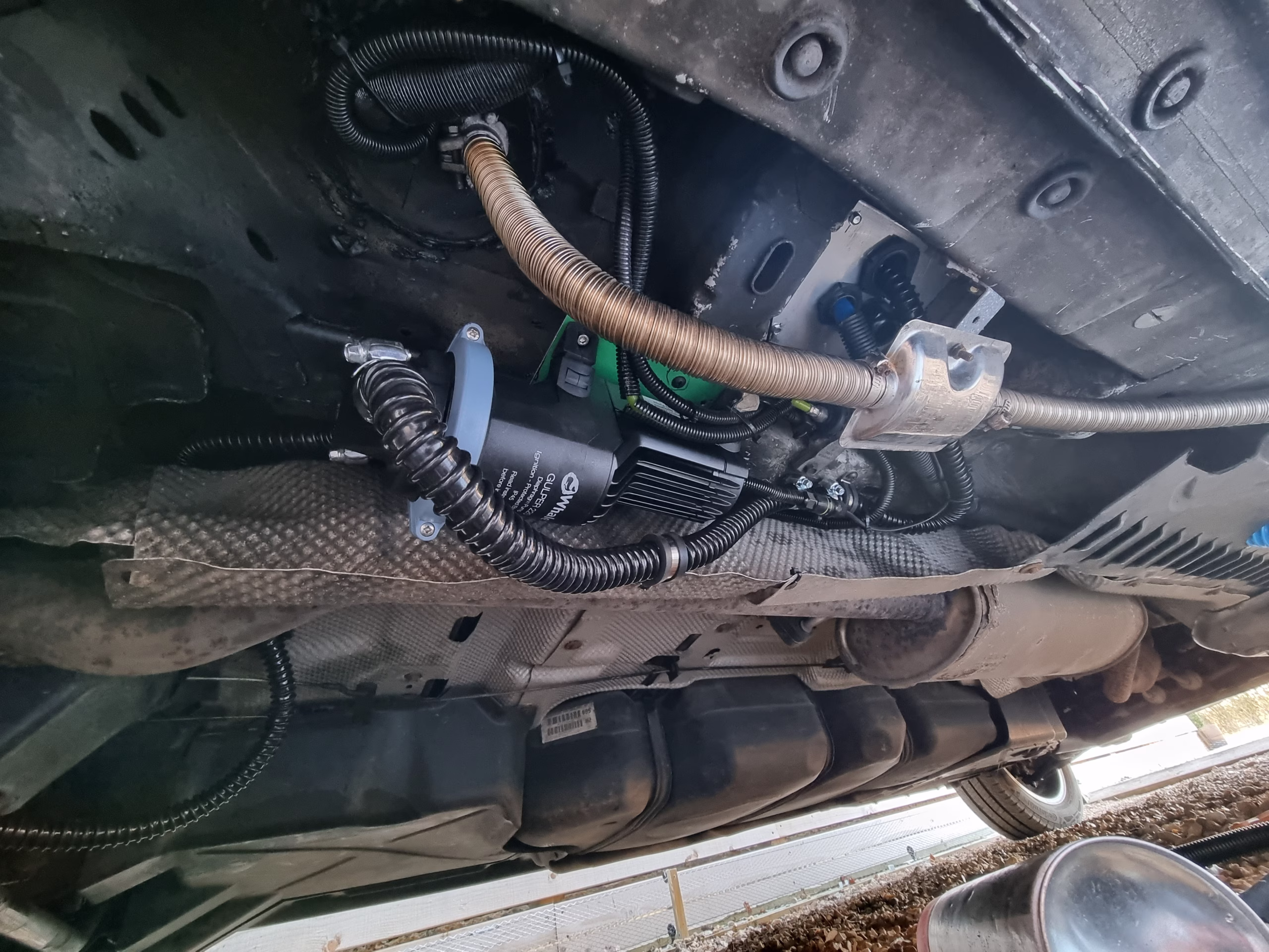 ⦁ Eberspacher D2 diesel night heater under kitchen units, discreetly installed.